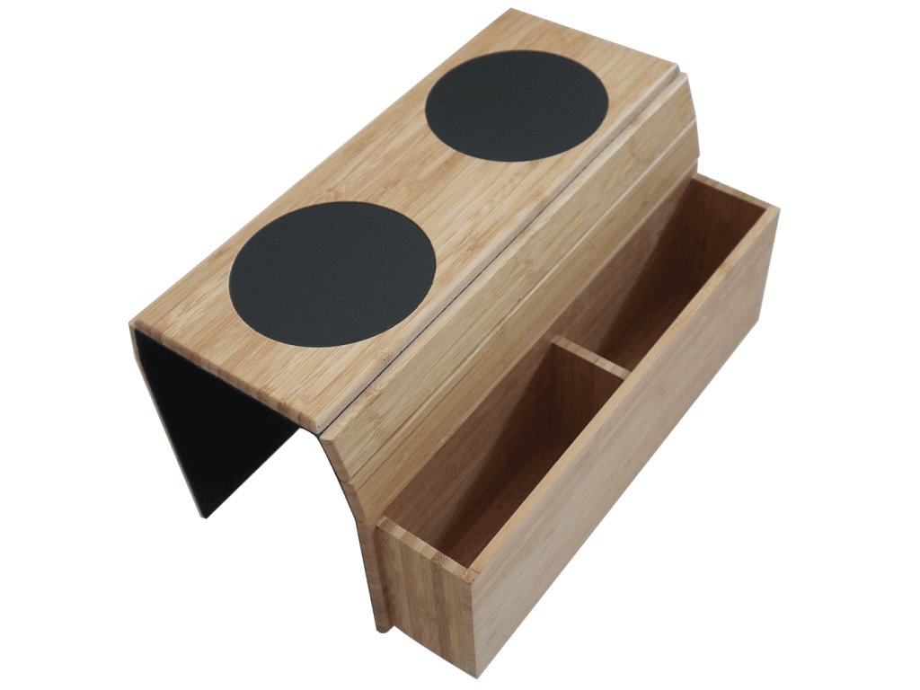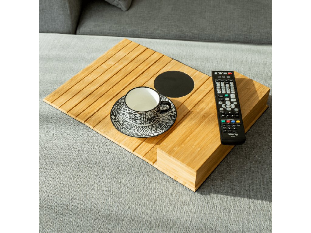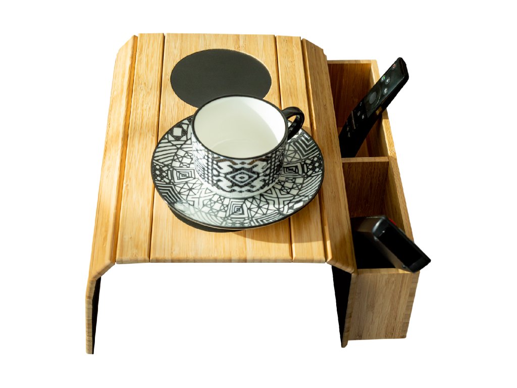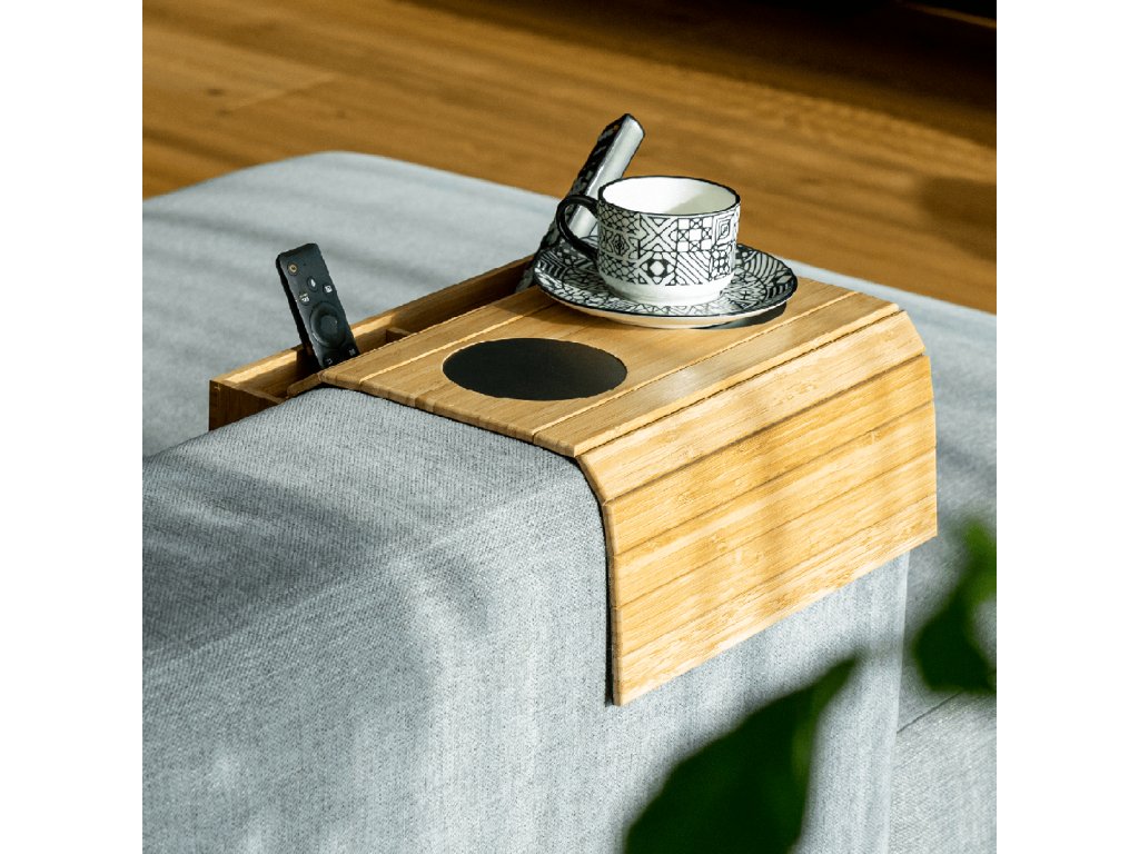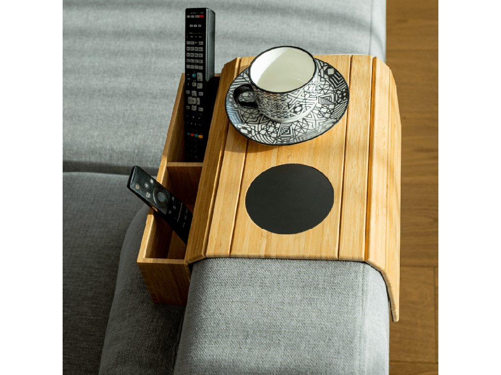 Na opěrky rukou na sedací soupravě, pohovce nebo křesle.
