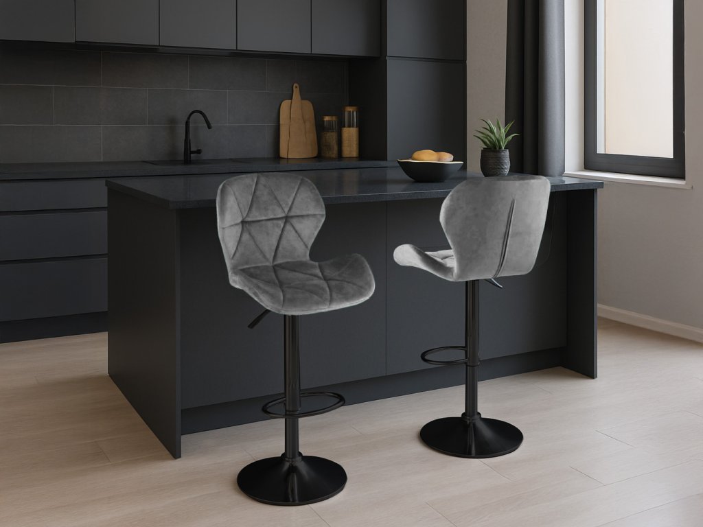 Barová židle s černou nohou WEST VELVET, šedá