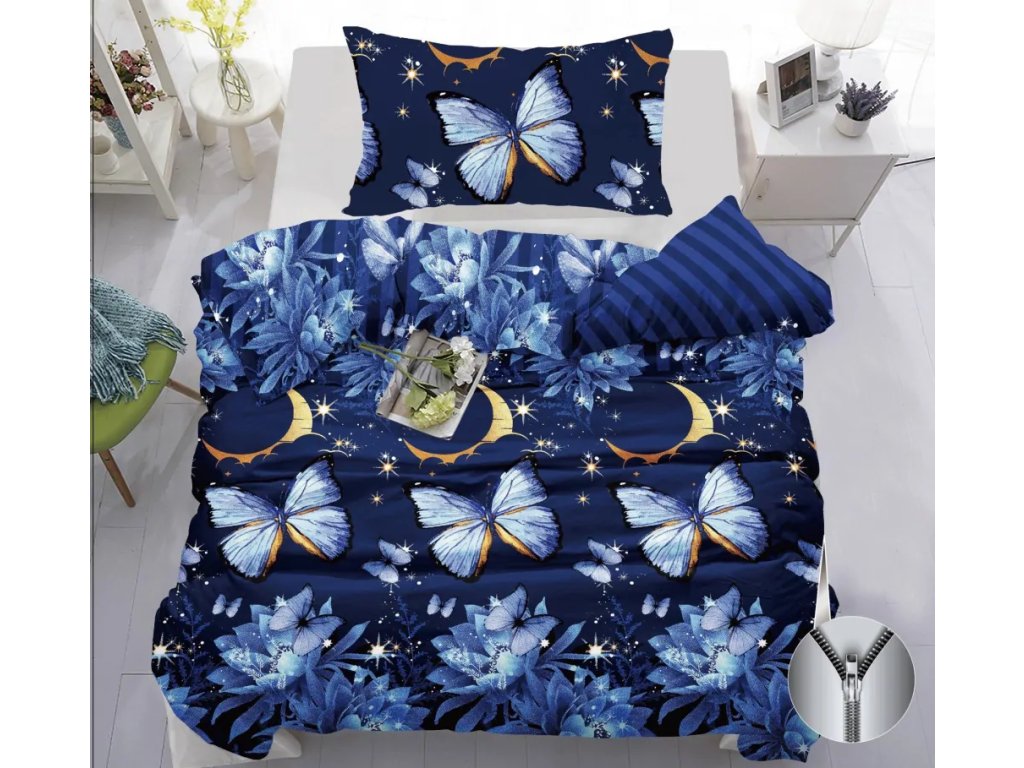 Bavlněné povlečení BUTTERFLY AND MOON tmavě modré