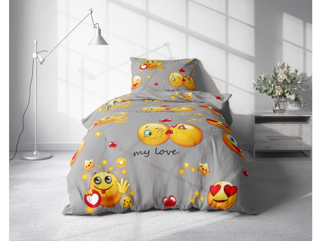Bavlněné povlečení EMOJI MY LOVE šedé