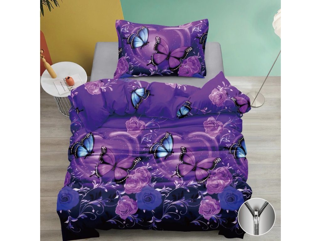 Bavlněné povlečení MOTÝLCI A RŮŽE fialové