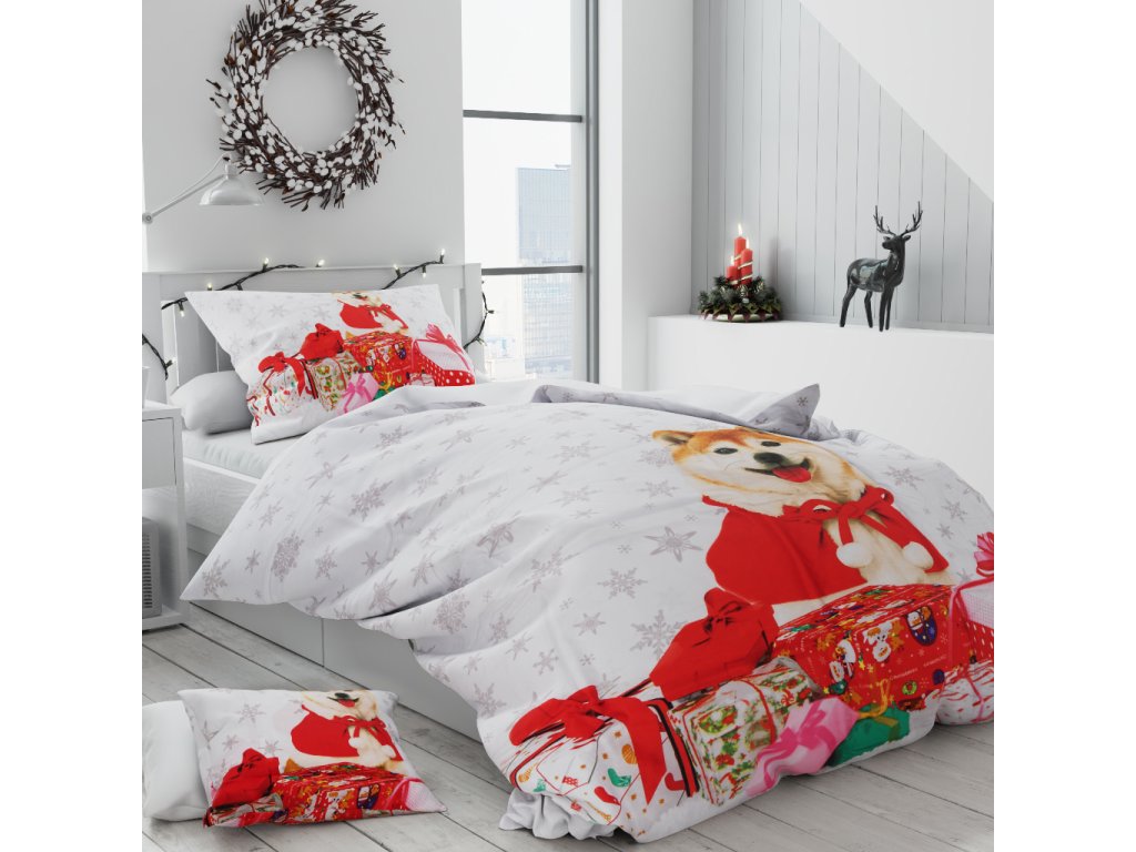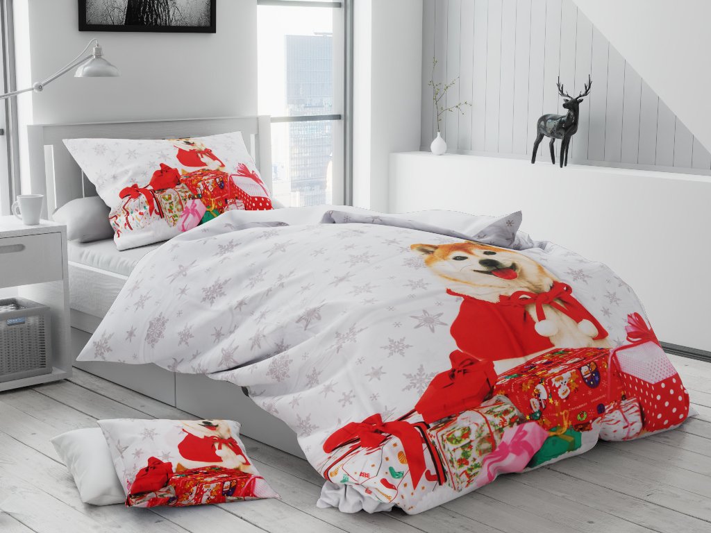 Bavlněné povlečení Vánoční pejsek + povlak na polštářek 40x50 cm zdarma