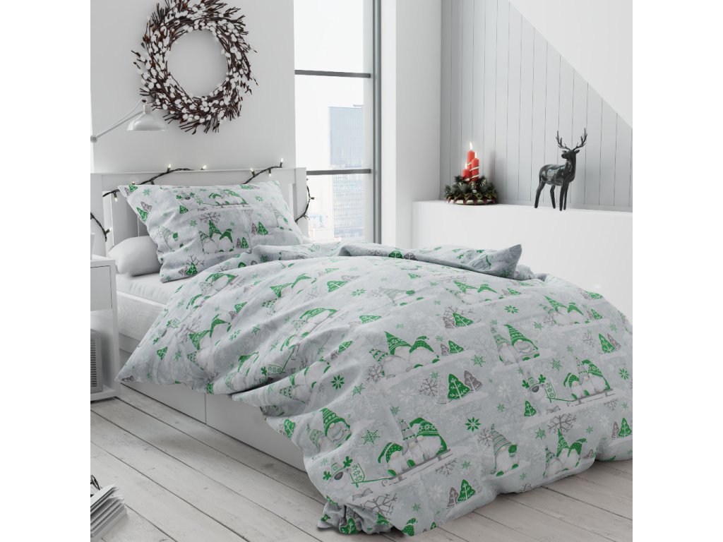 Bavlněné povlečení VÁNOČNÍ SKŘÍTEK zelený