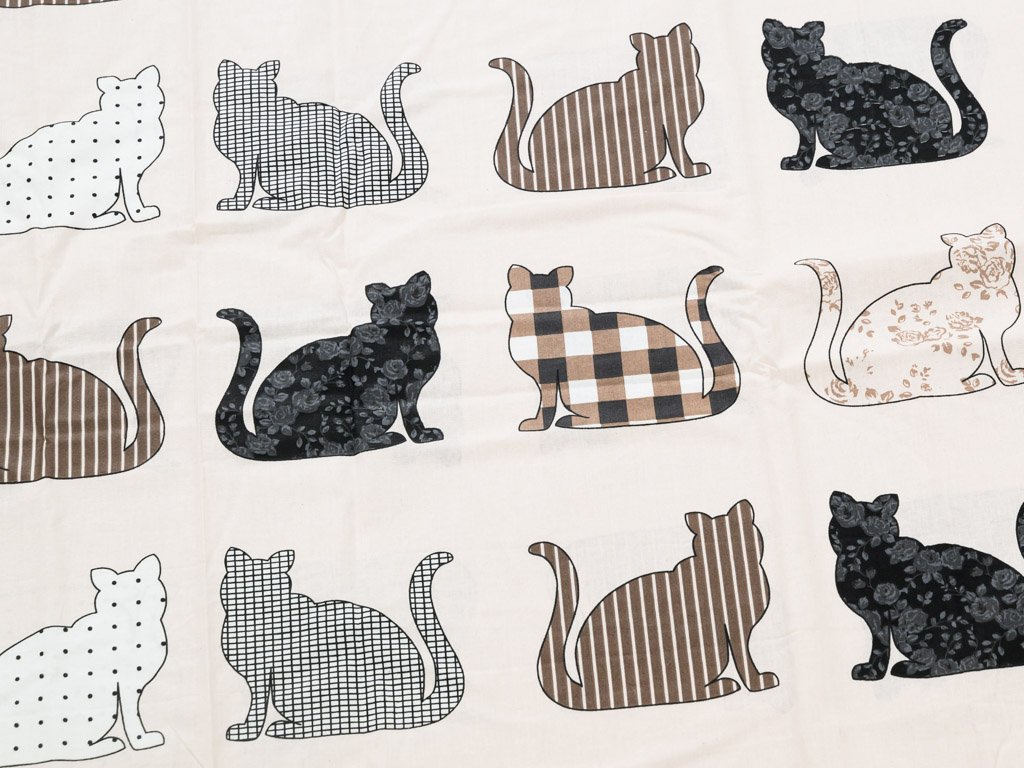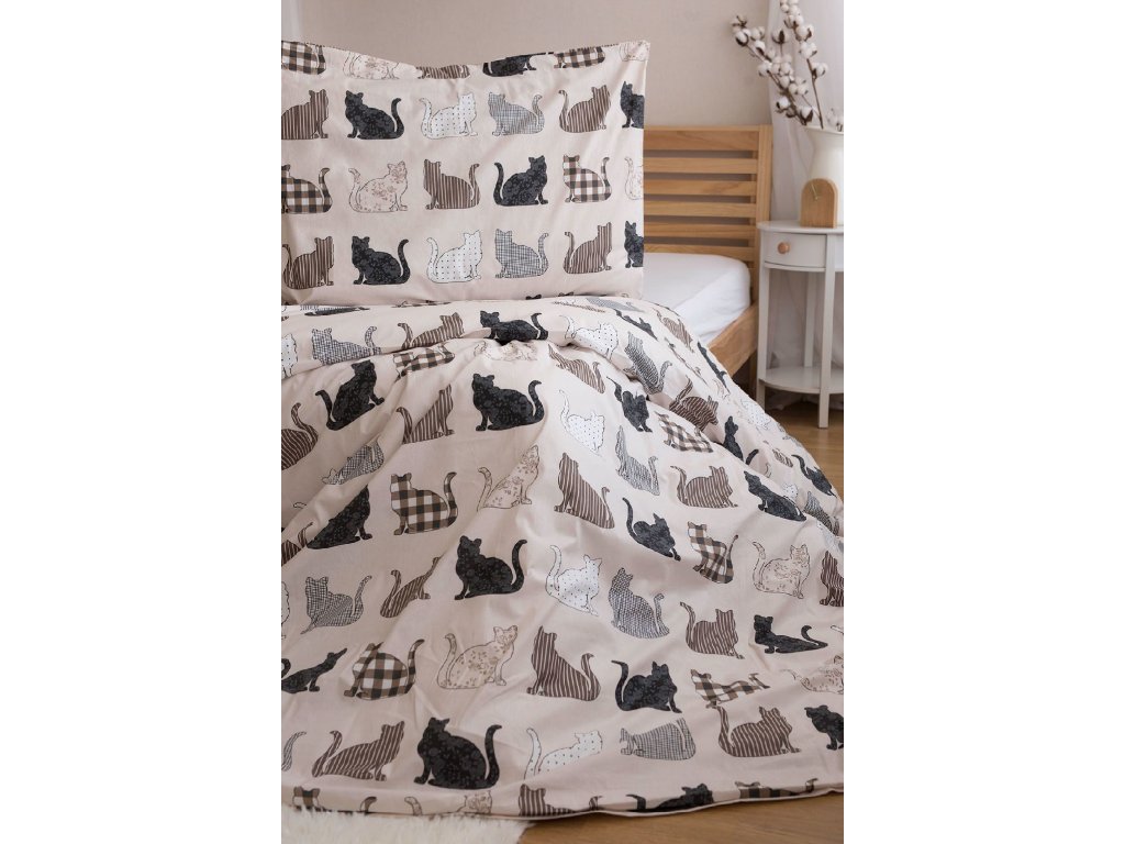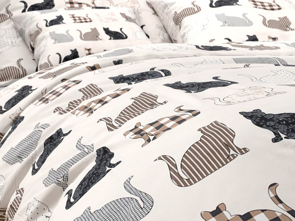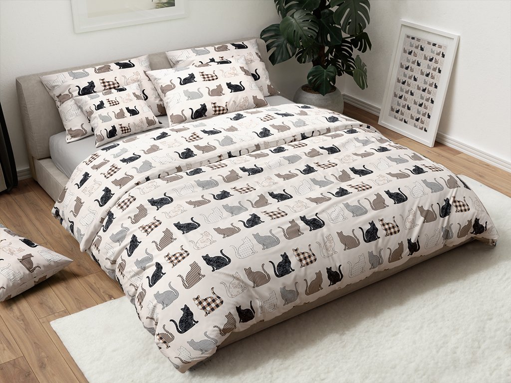 Povlečení z Renforcé bavlny PATTERNED CATS béžové