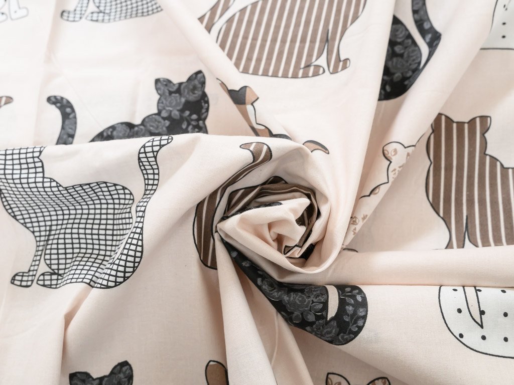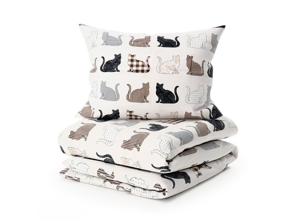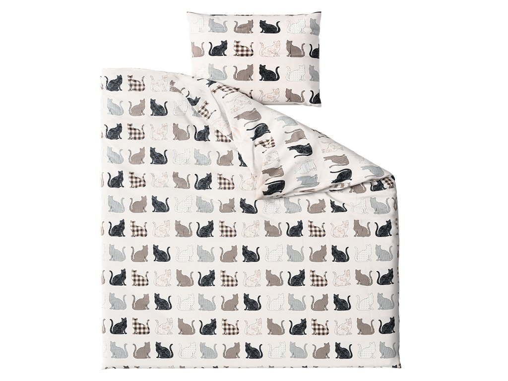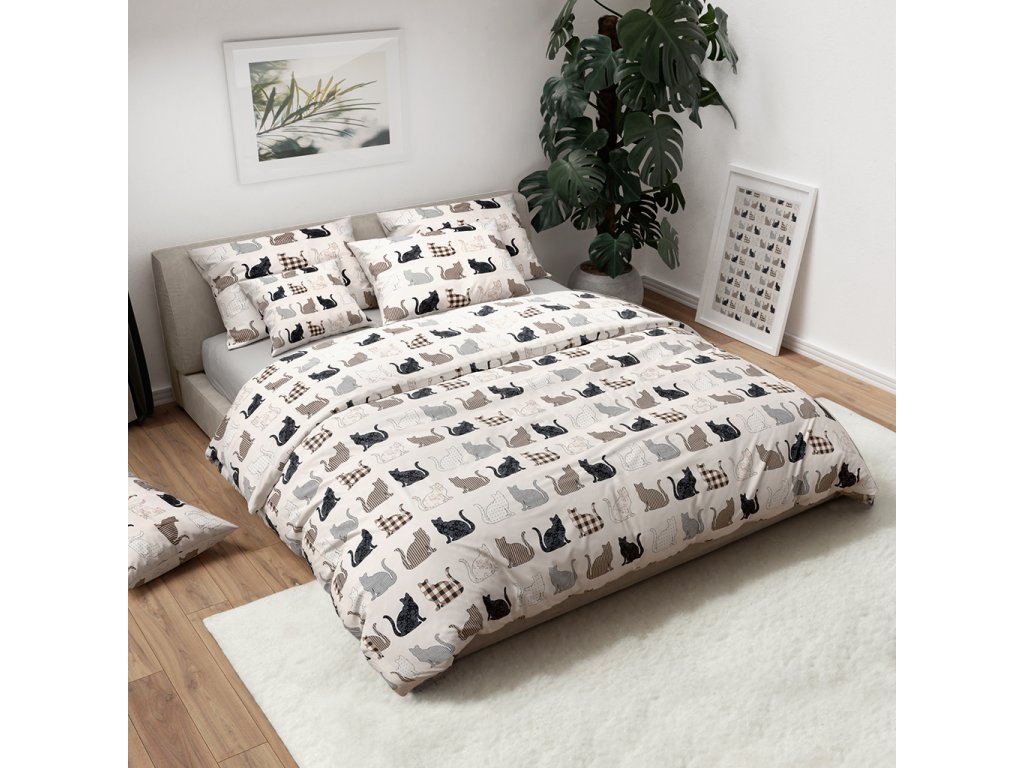 Povlečení z Renforcé bavlny PATTERNED CATS béžové