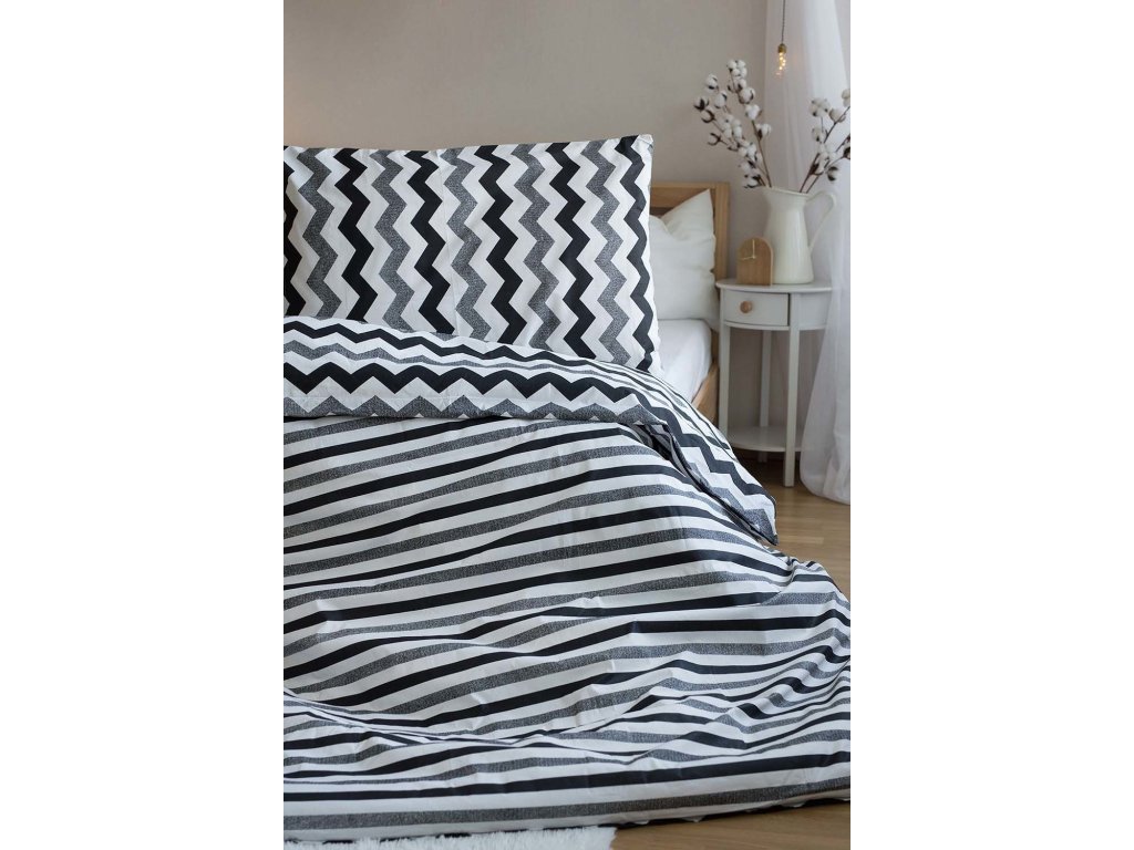 Povlečení z Renforcé bavlny PRUH černobílé