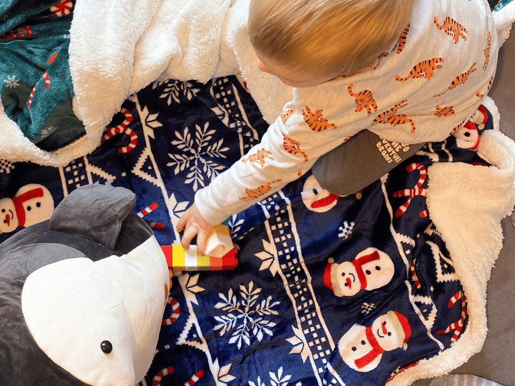 Vánoční tmavě modrá beránková deka z mikroplyše FROSTY