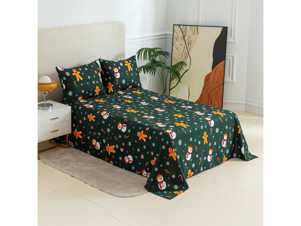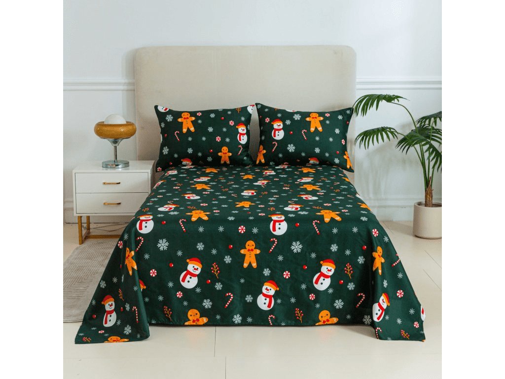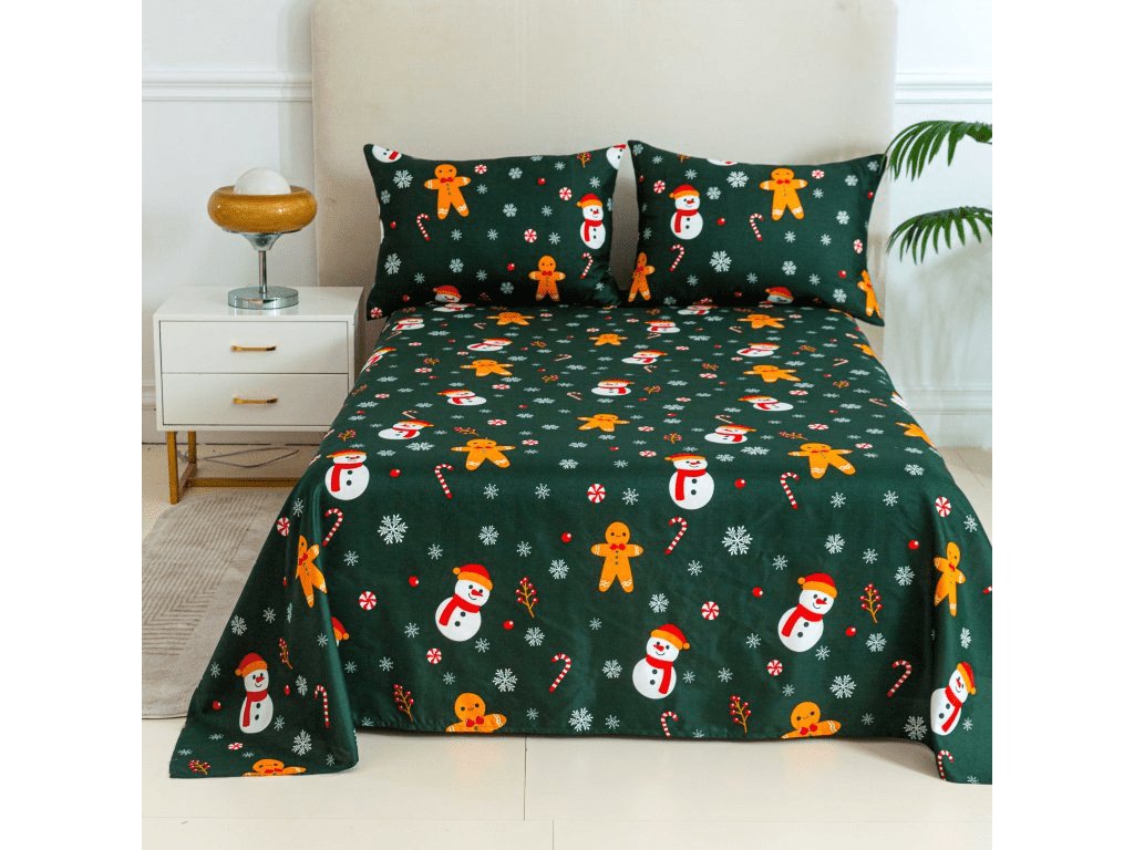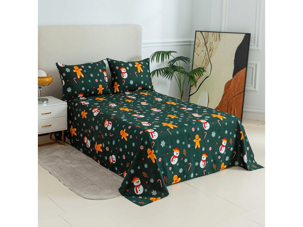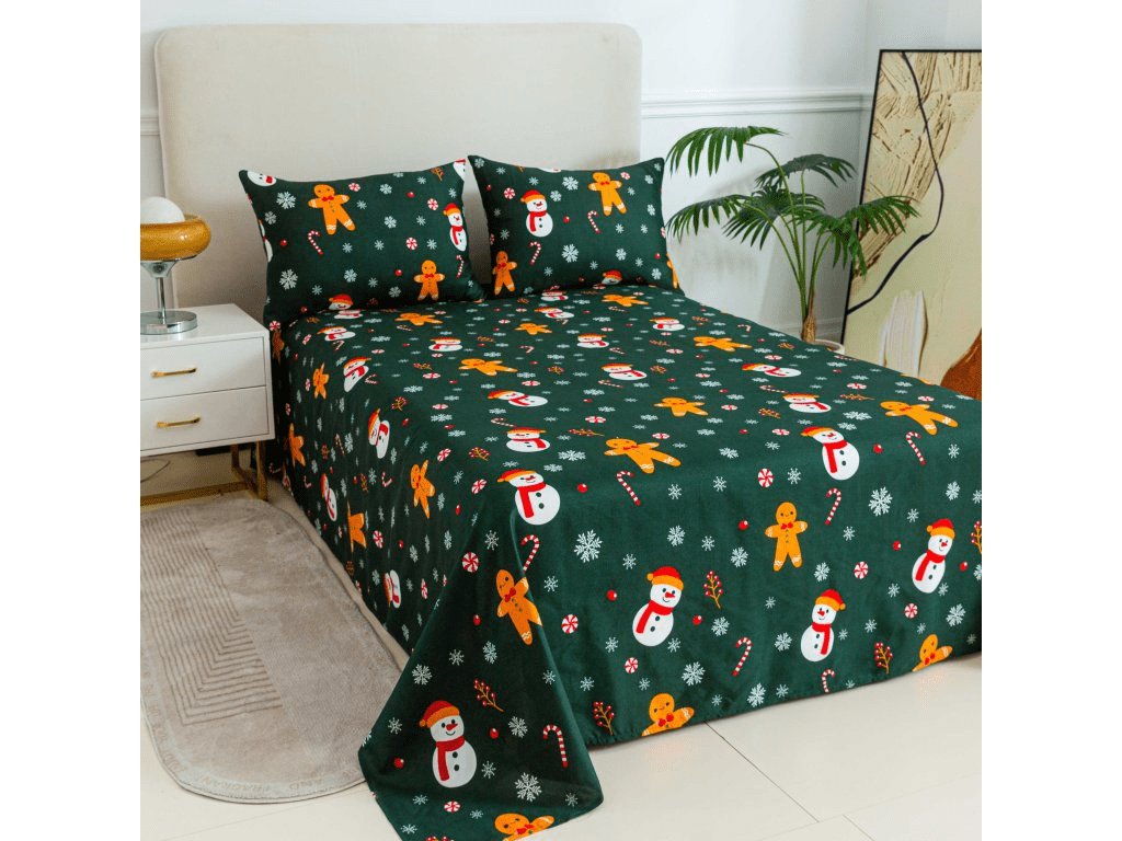 Prostěradlo a povlak na polštář SNĚHULÁK A PERNÍČEK