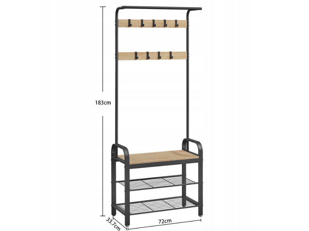 Kovová předsíňová stěna PURE 183 cm, černá/dub sonoma