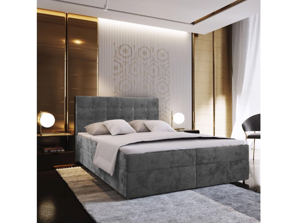 Čalouněná postel boxspring GLORIEN VELVET 160x200 cm šedá