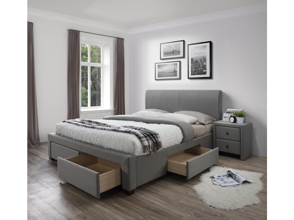 Šedá čalouněná postel MODENA 180 x 200 cm
