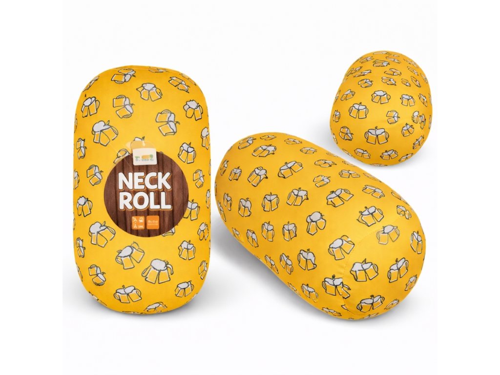 Cestovní polštářek BEER NECK ROLL 30x15 cm, žlutý