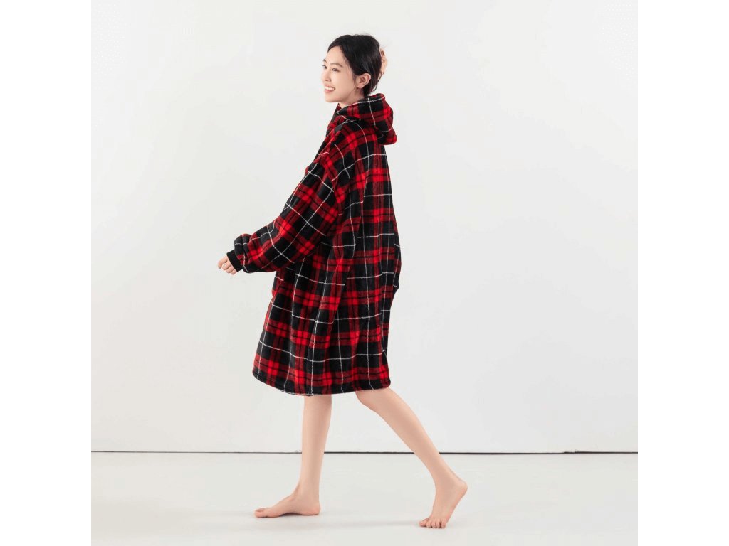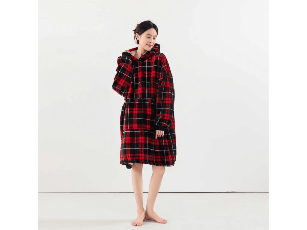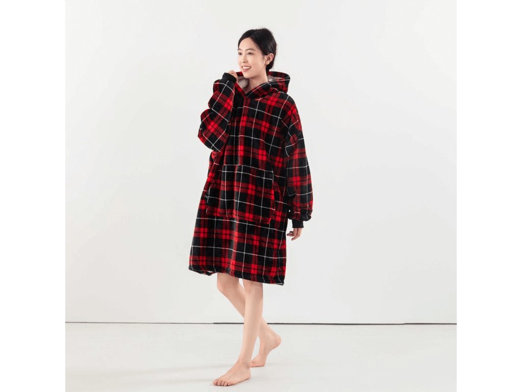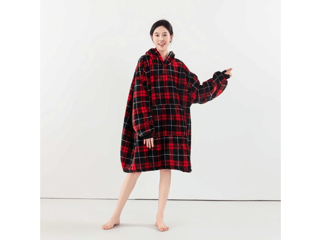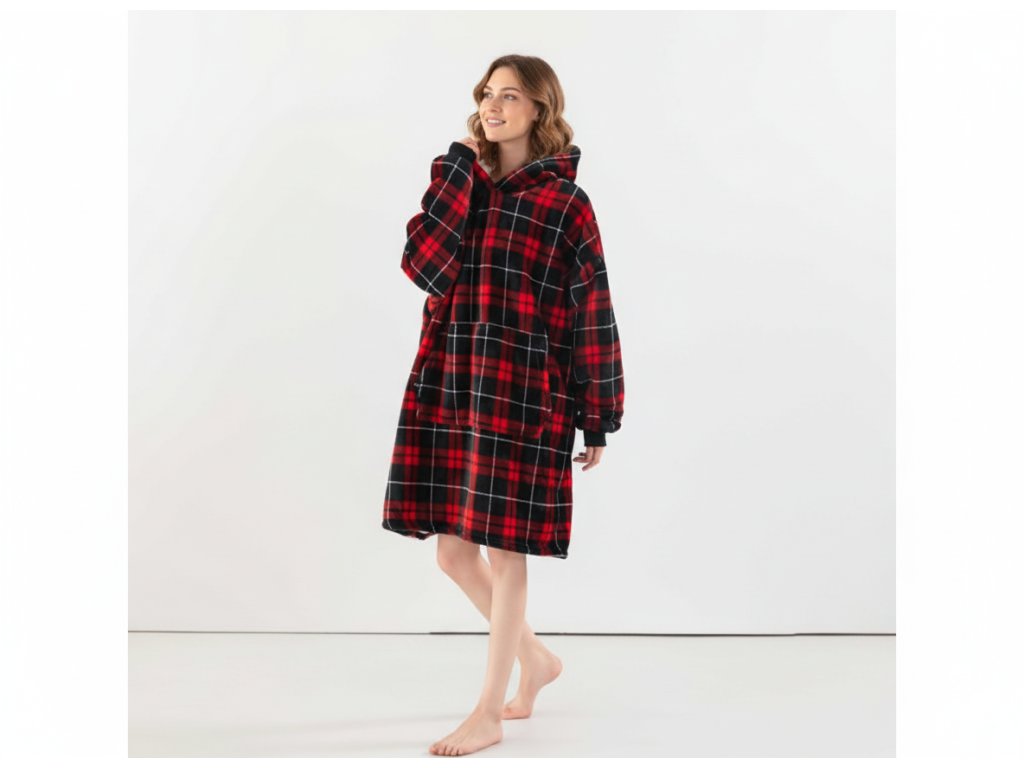 Beránková mikinová deka s rukávy a kapucí ALBURY, červená