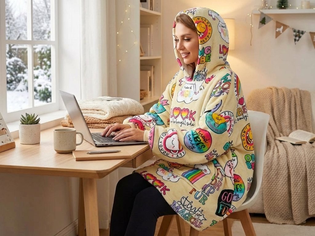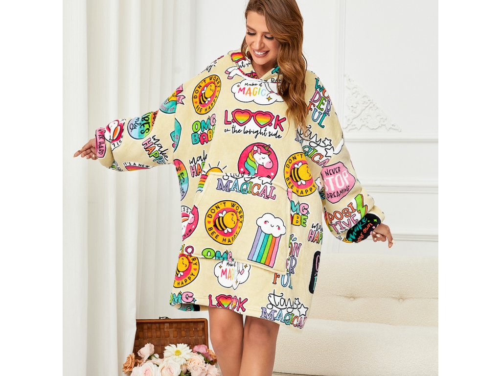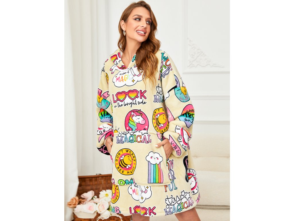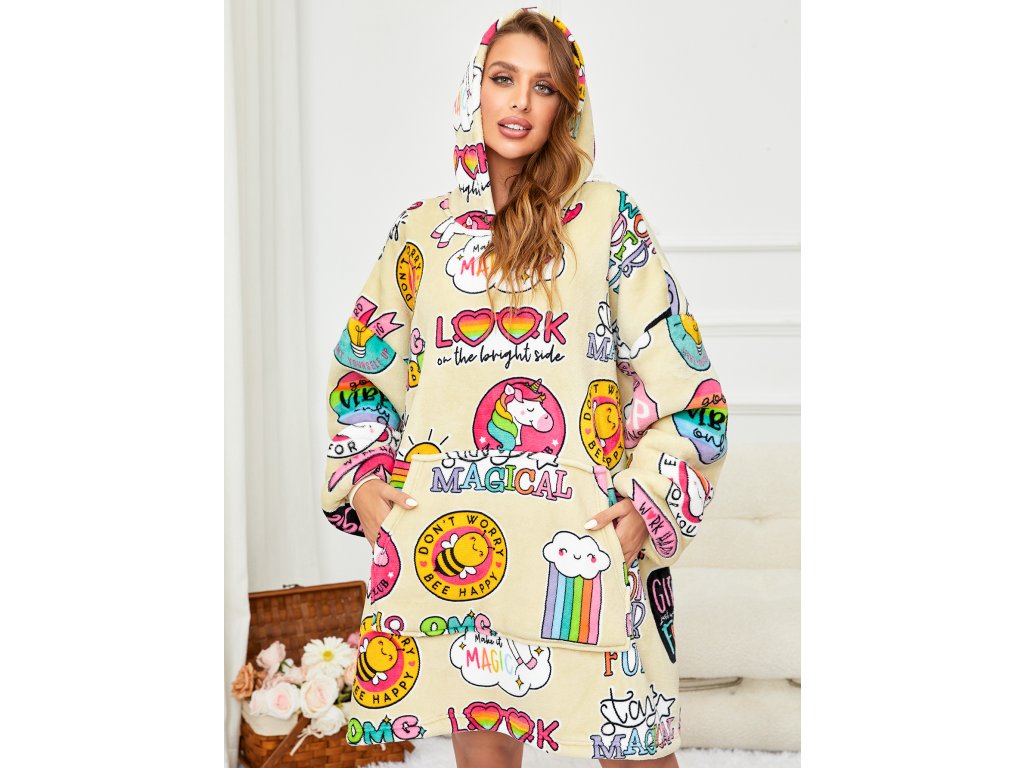 Beránková mikinová deka s rukávy a kapucí MAGICAL krémová
