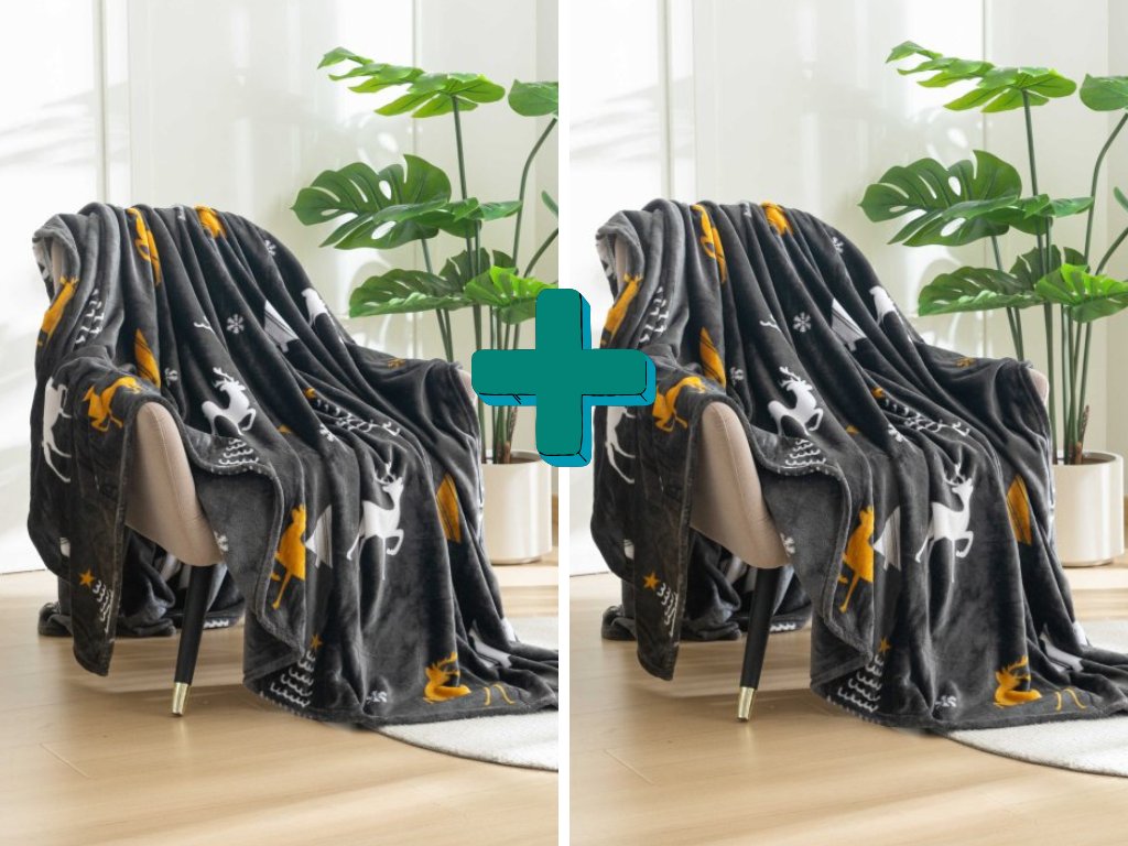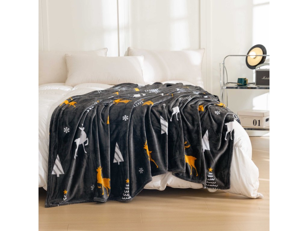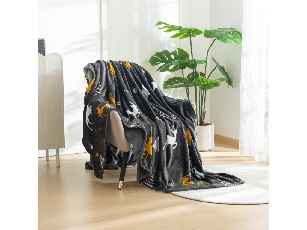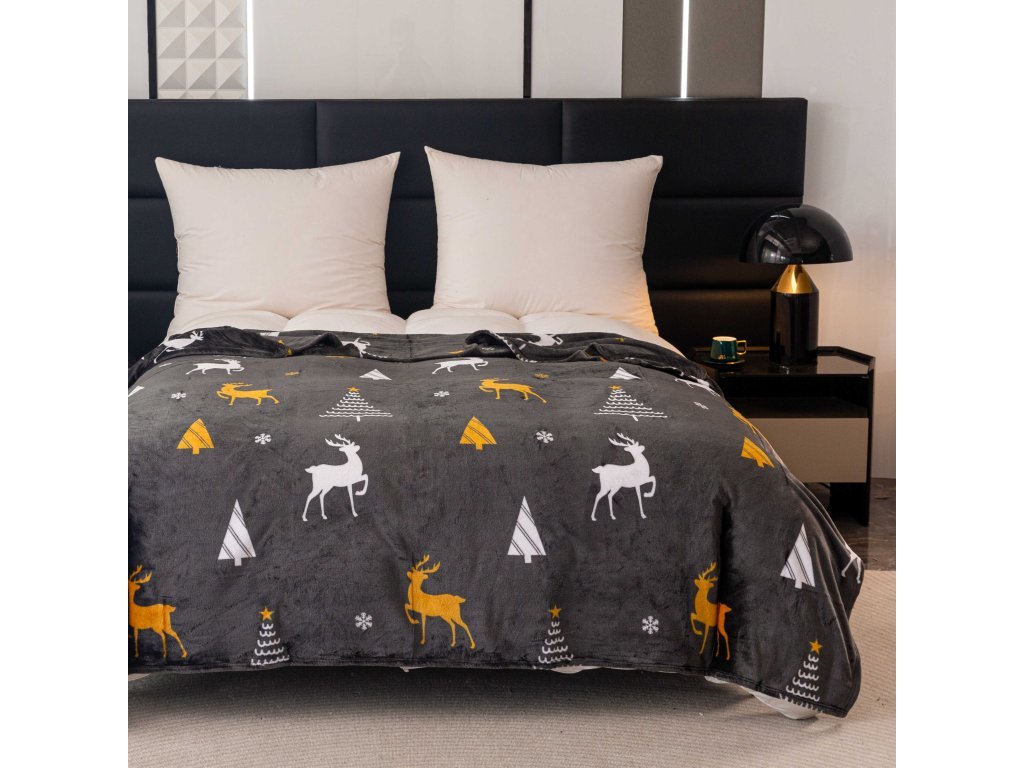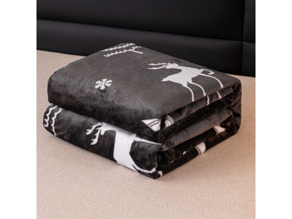 2x Tmavě šedá vánoční mikroplyšová deka WHITE TREES 150x200 cm