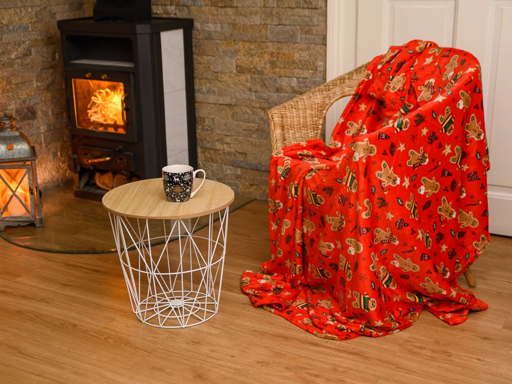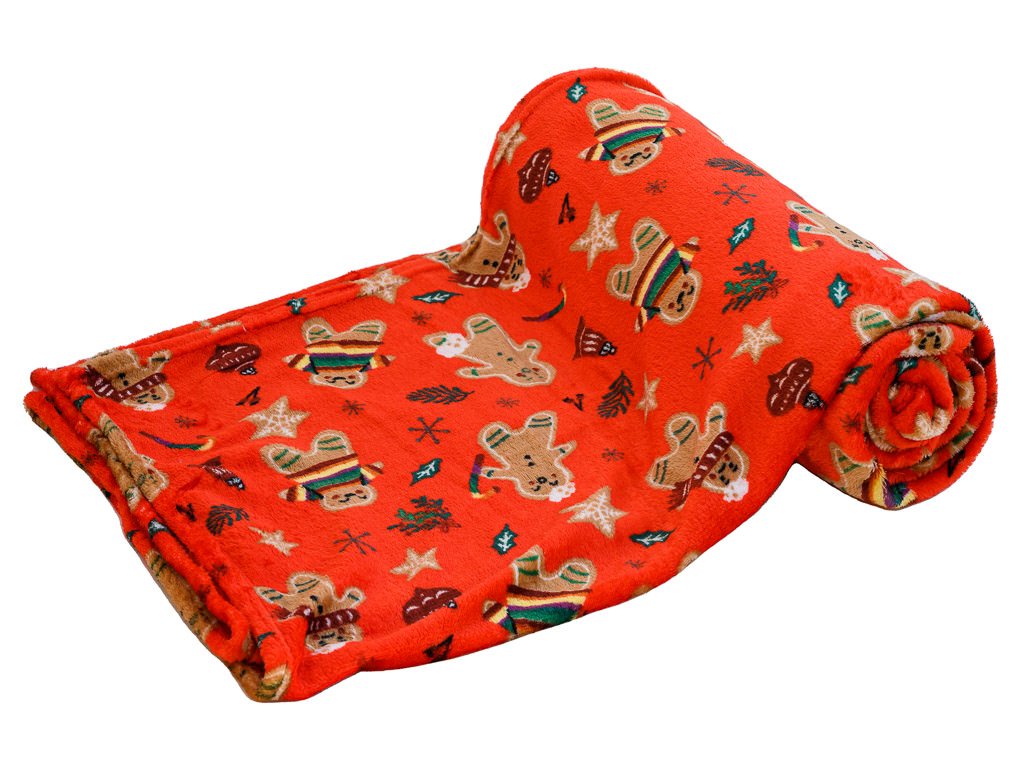 Červená vánoční mikroplyšová deka VÁNOCE, 180x200 cm