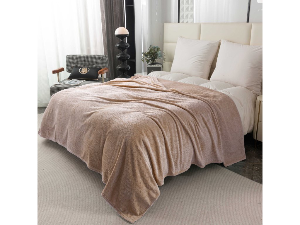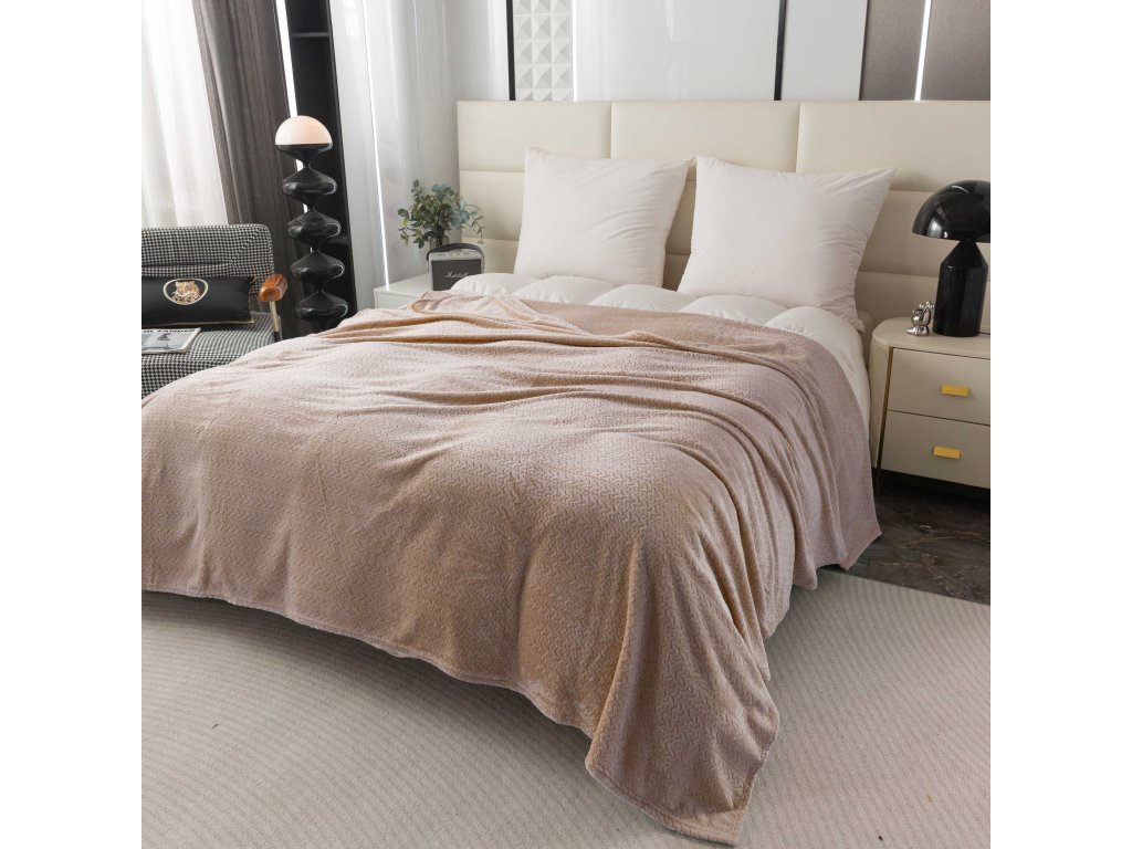 Mikroplyšová deka se vzorem BREEZE béžová