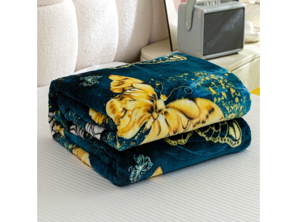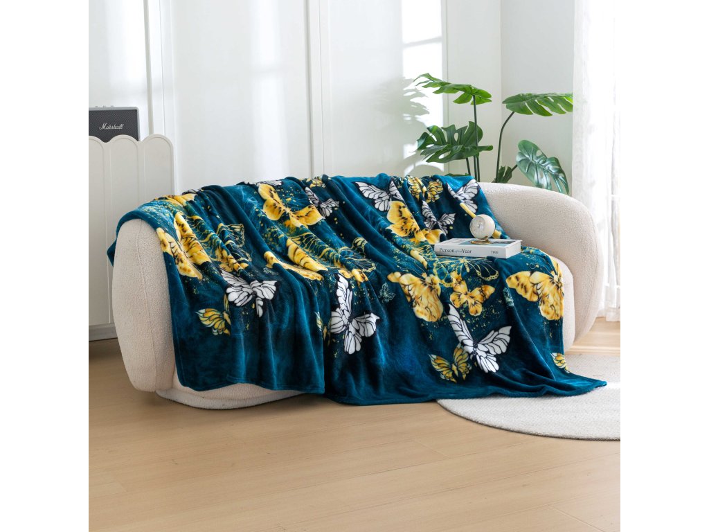 Mikroplyšová deka ZLATÝ A BÍLÝ MOTÝL, tmavě zelená