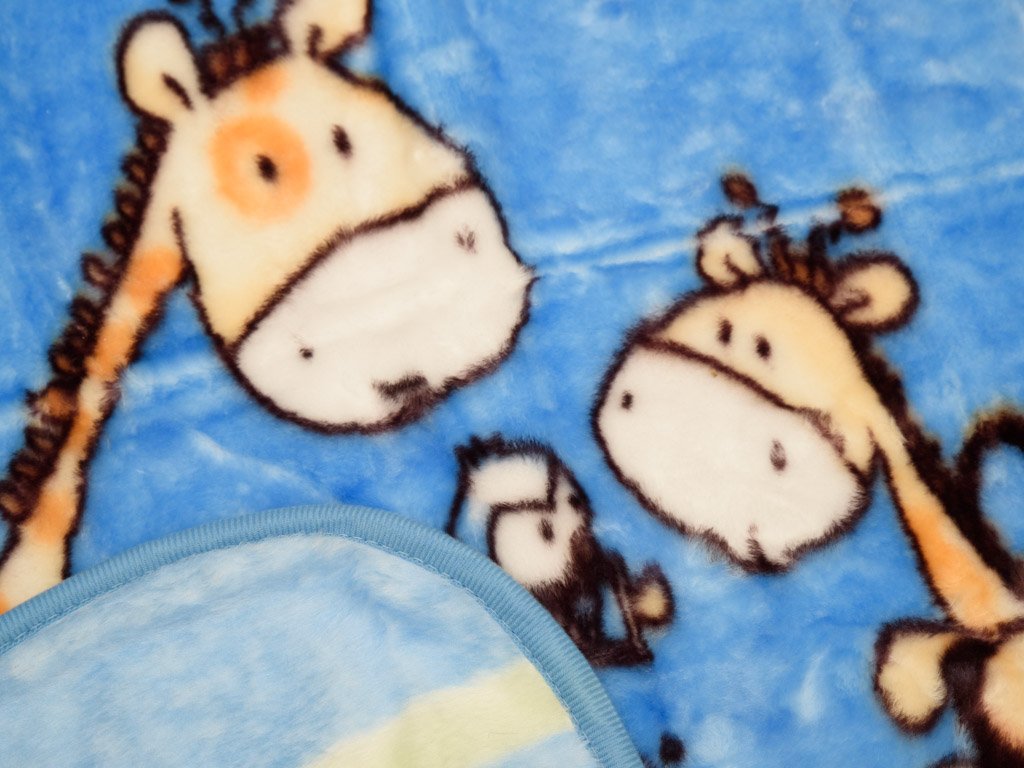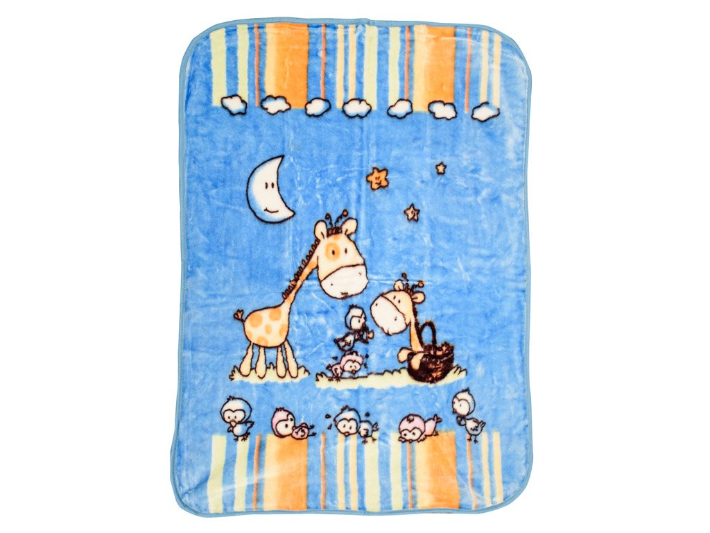 Modrá dětská deka ŽIRAFY, 80x110 cm