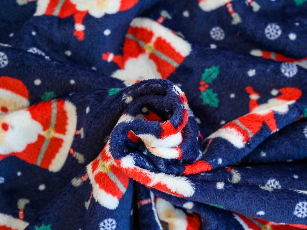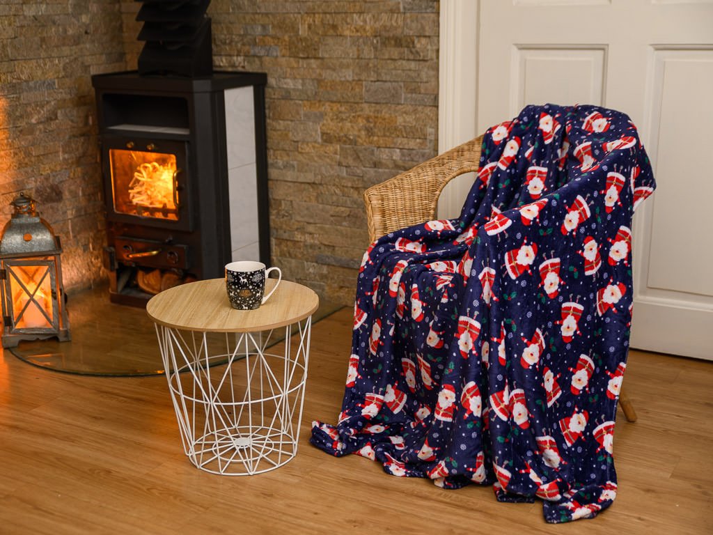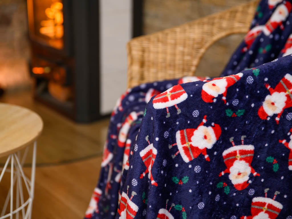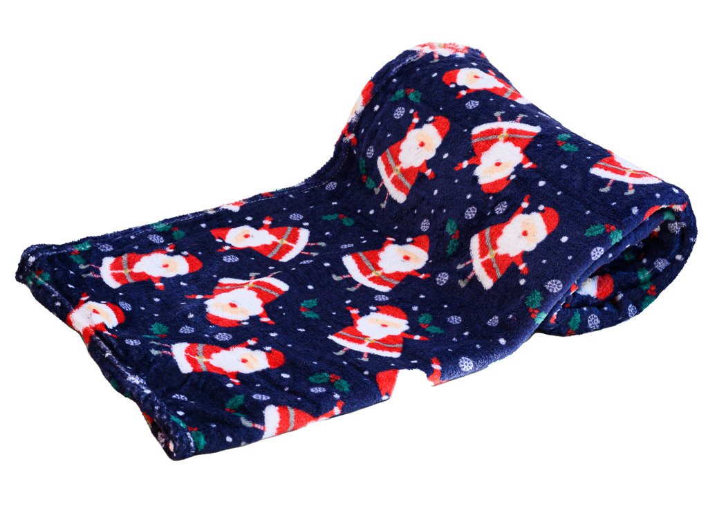 Modrá vánoční mikroplyšová deka SANTA, 180x200 cm