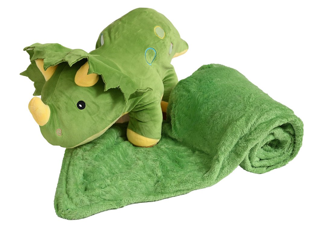 Plyšový dinosaurus s měkkou dekou je ideální volbou pro děti, které milují dinosaury a zároveň si potrpí na pohodlí. Tento veselý zelený kamarád v sobě ukrývá deku o velikosti 100 x 160 cm vyrobenou z jemného mikroplyše (100% polyester), která zahřeje při čtení pohádek, odpočinku i na cestách. Dekorativní i praktický, dinosaurus se rychle stane nepostradatelnou součástí dětského dne i večera.