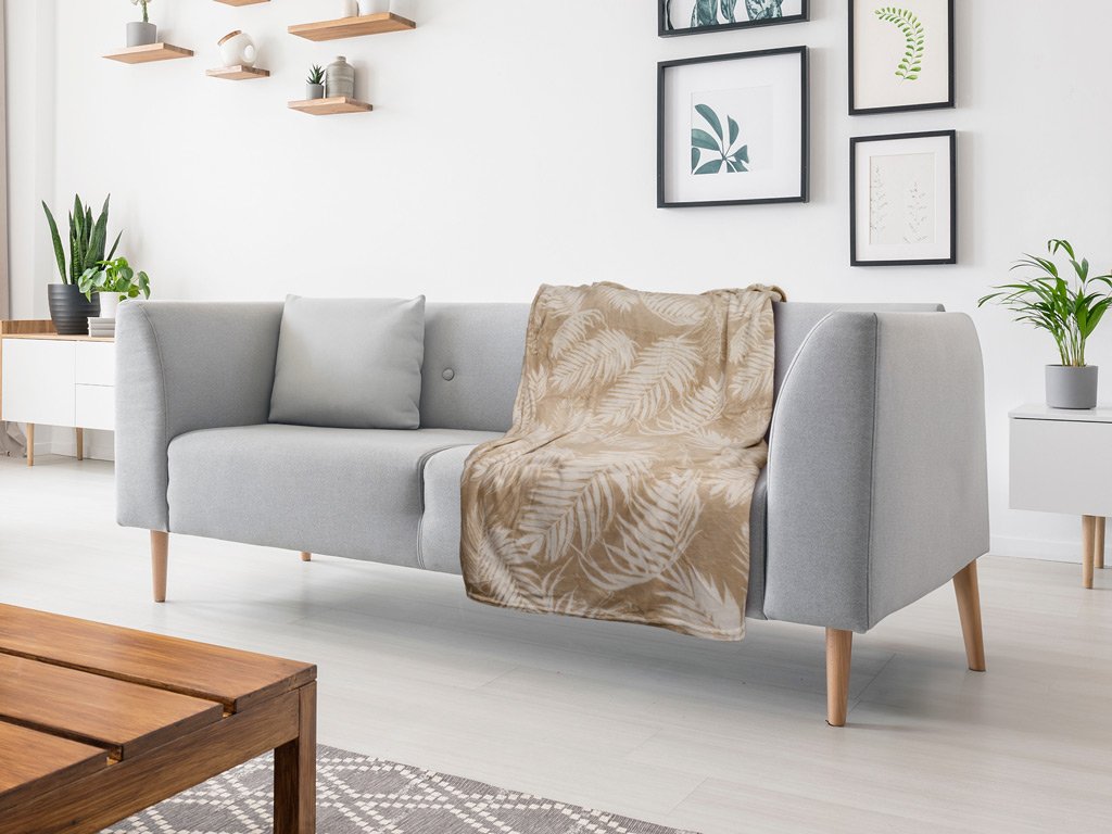 Světle hnědá mikroplyšová deka FIEN, 150x200 cm