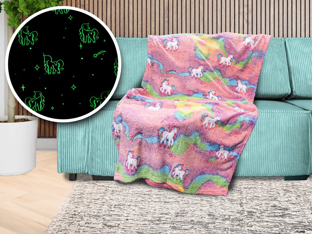 Svítící deka mikroflanel UNICORN 150x200 cm růžová