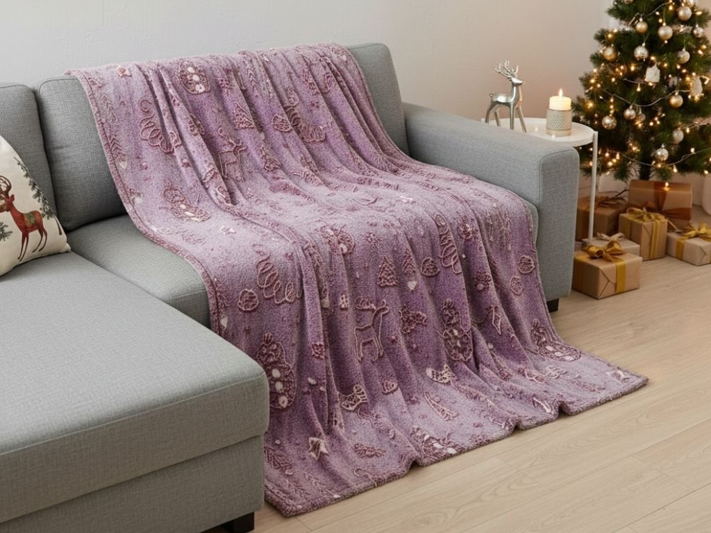 Svítící vánoční mikroplyšová deka PAINTY CHRISTMAS, vínová