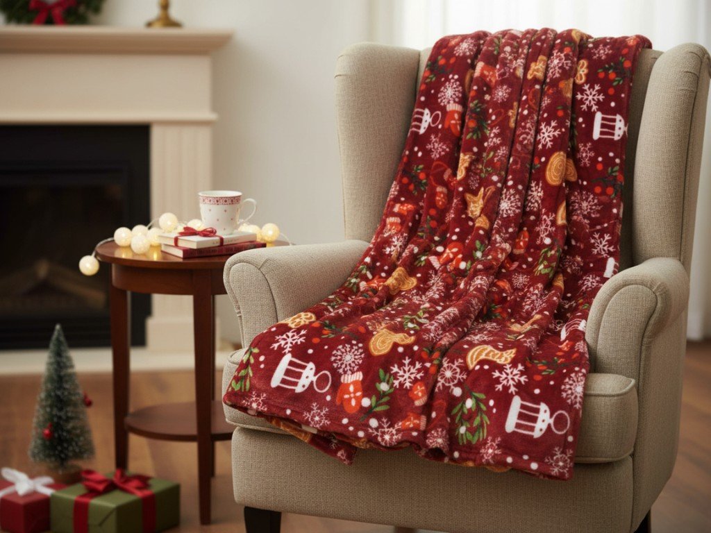 Vánoční mikroplyšová deka GINGERBREAD HEART, červená