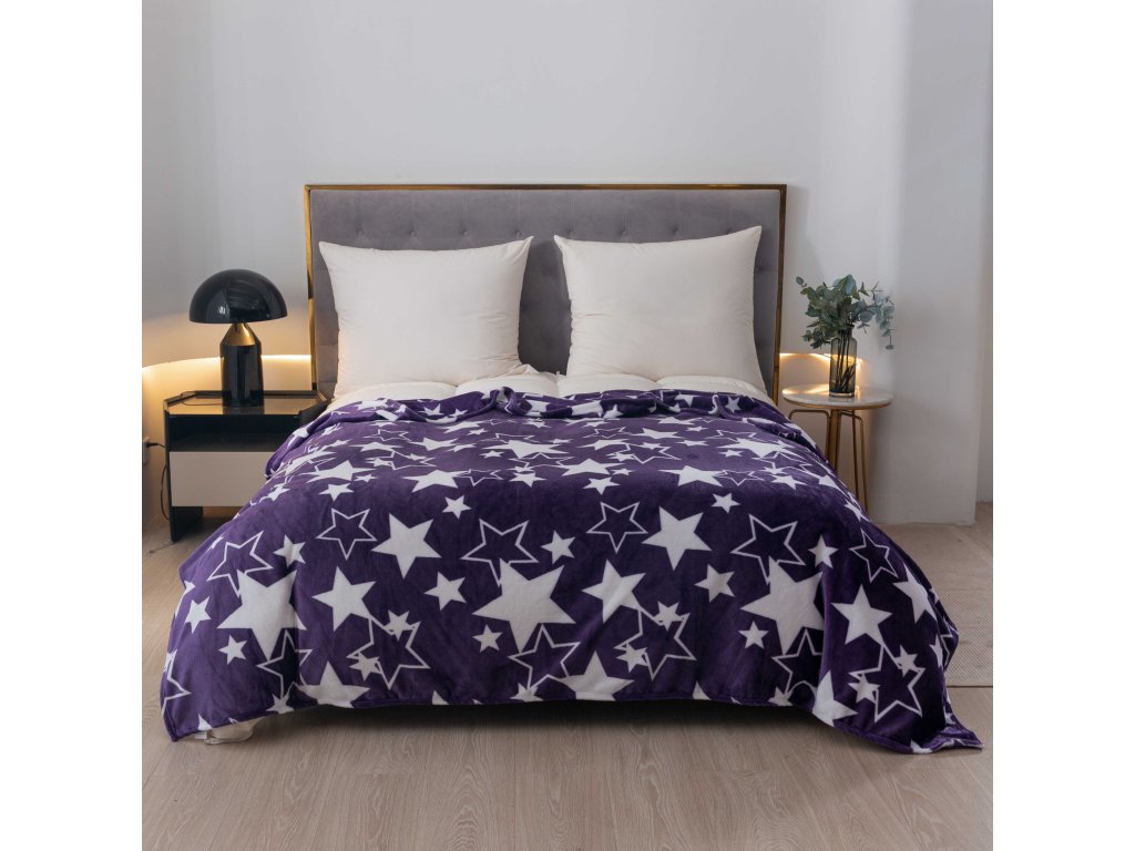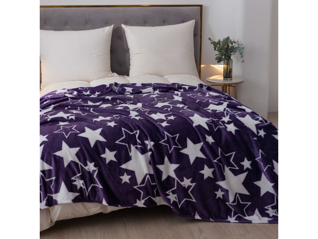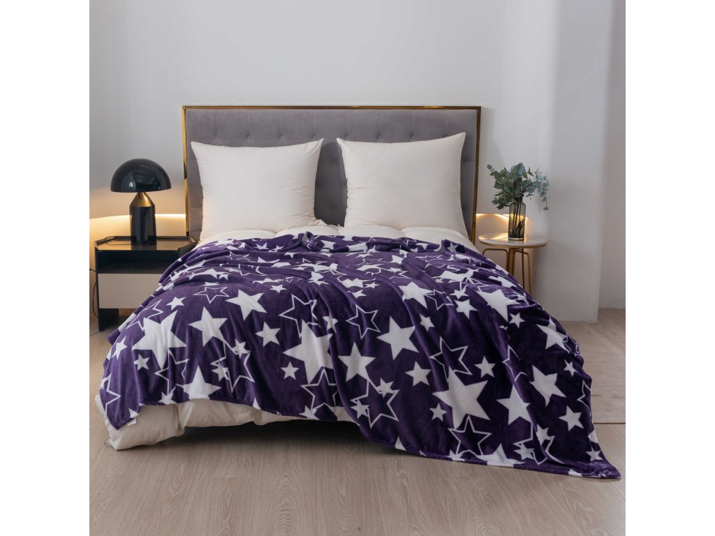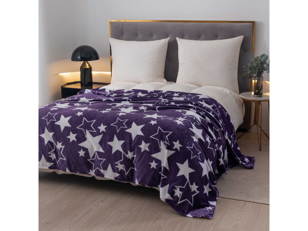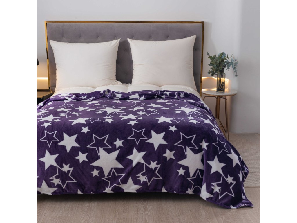Vánoční mikroplyšová deka HVĚZDY fialová