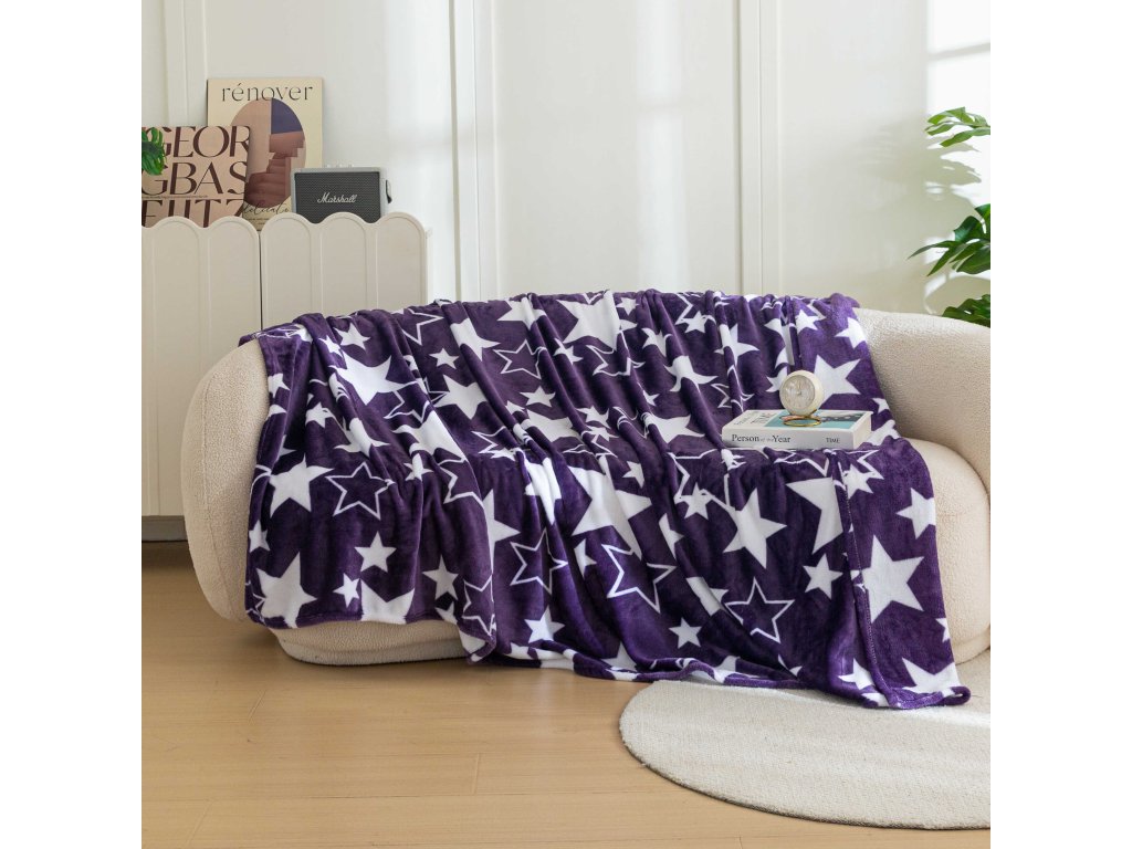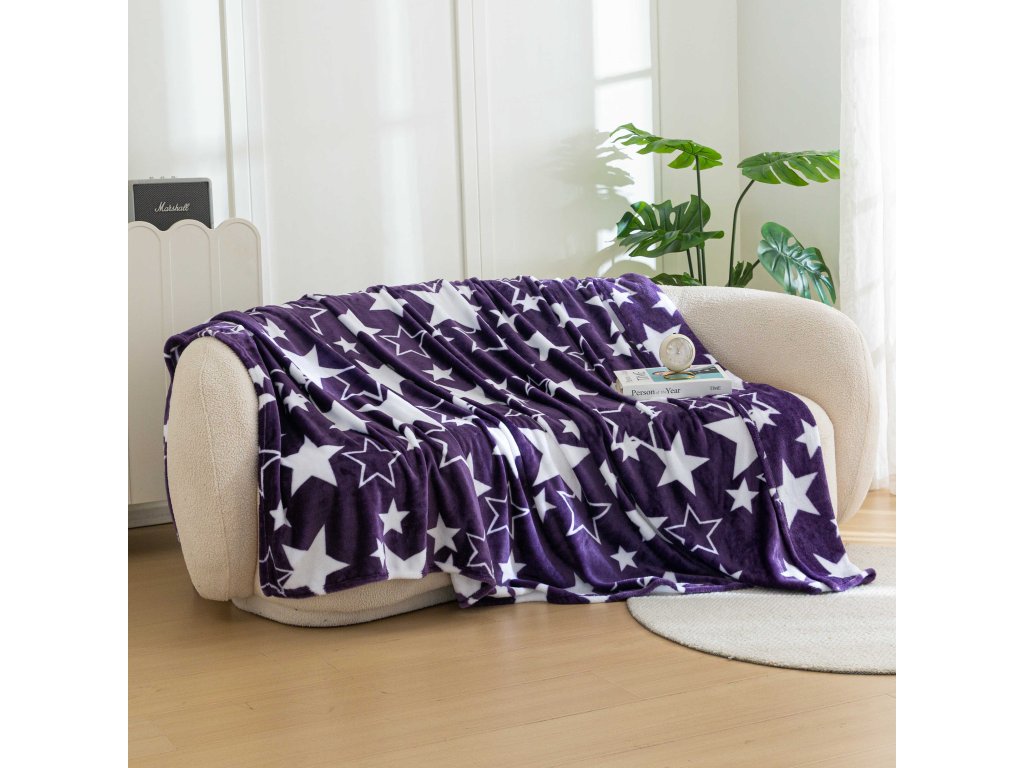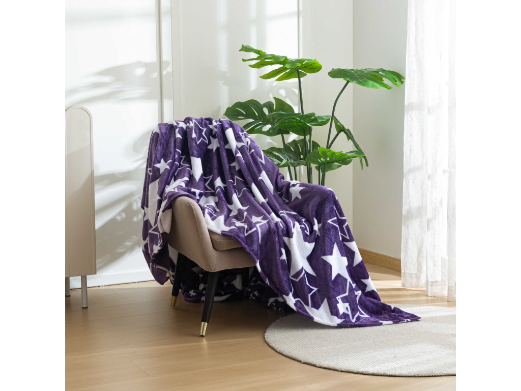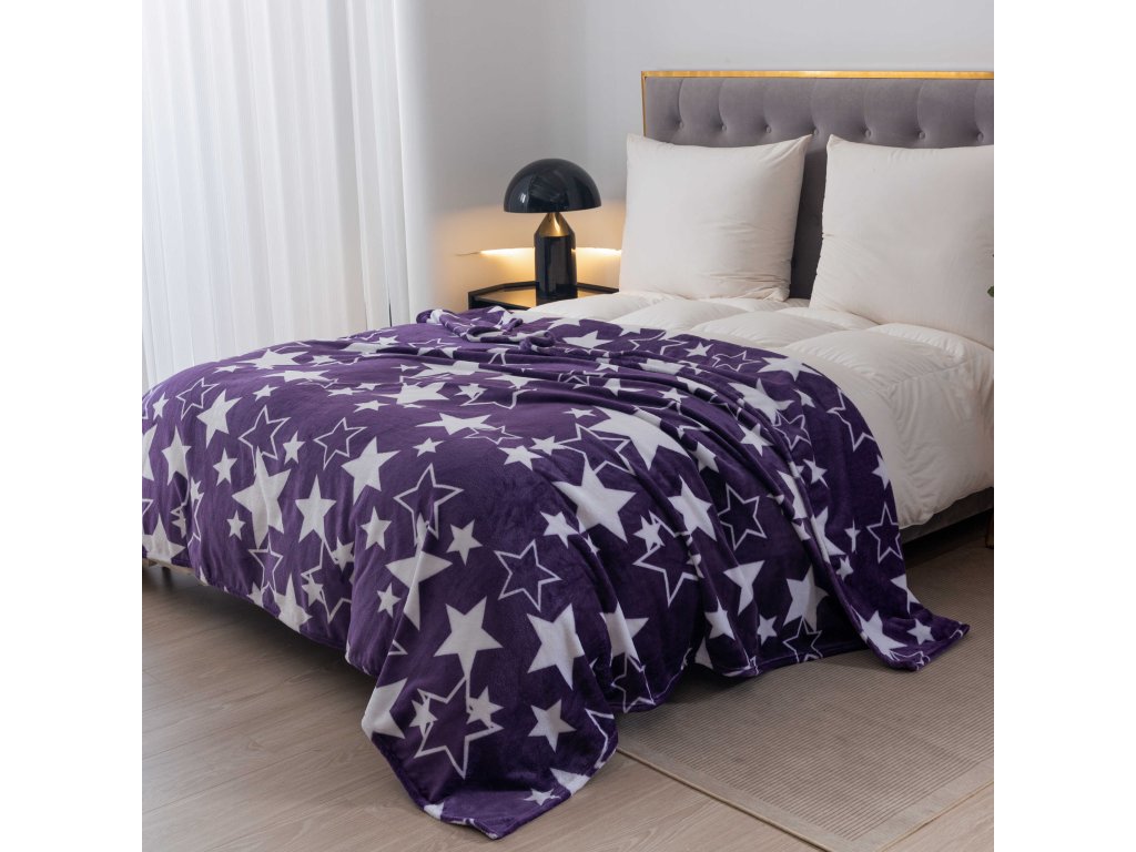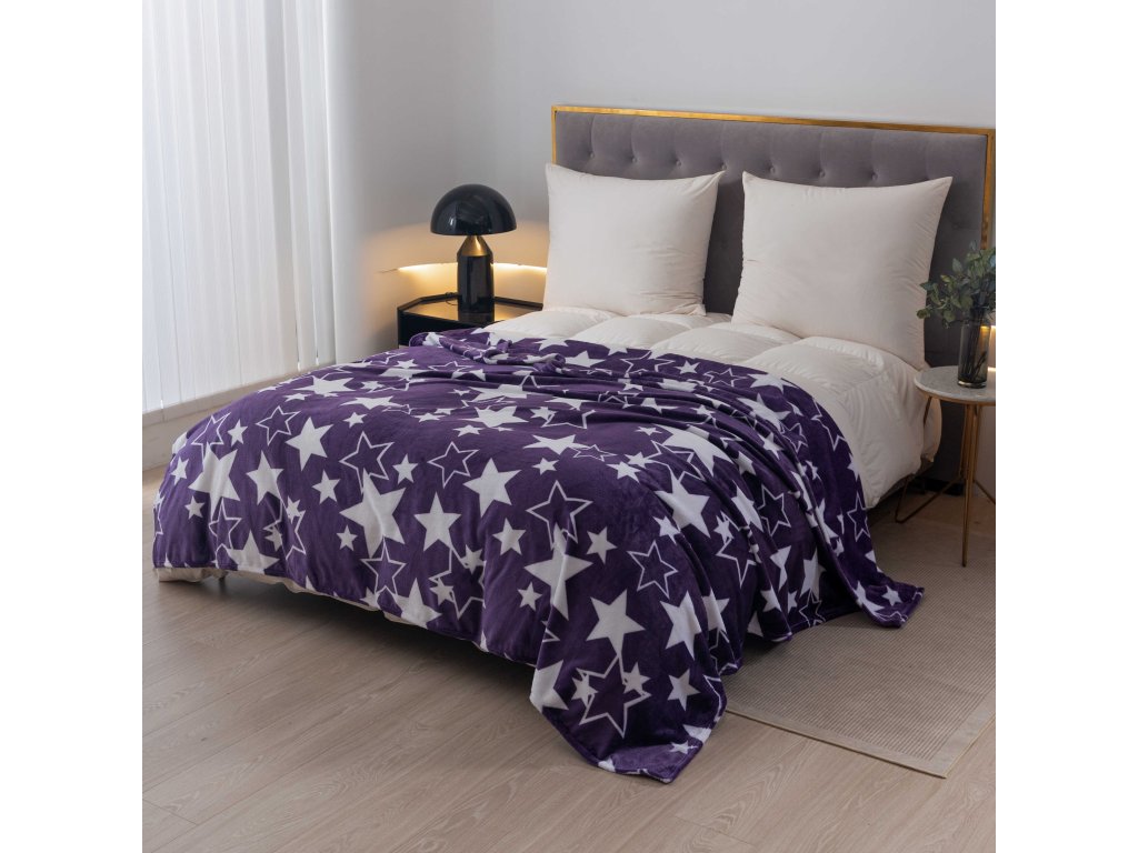 Vánoční mikroplyšová deka HVĚZDY fialová