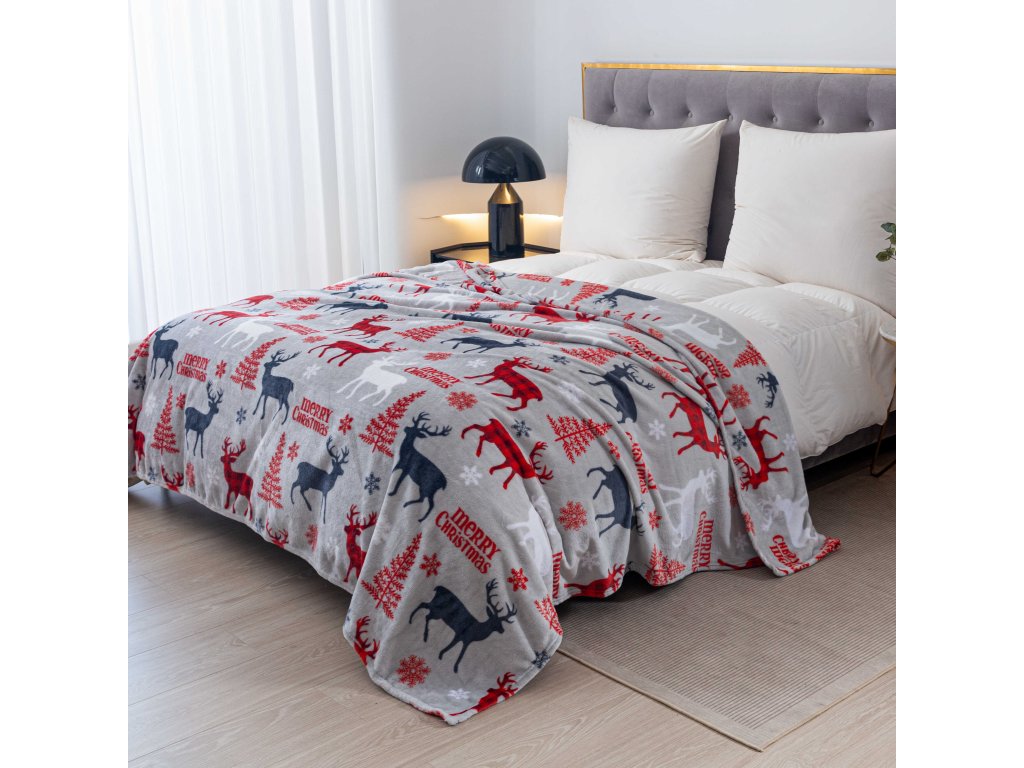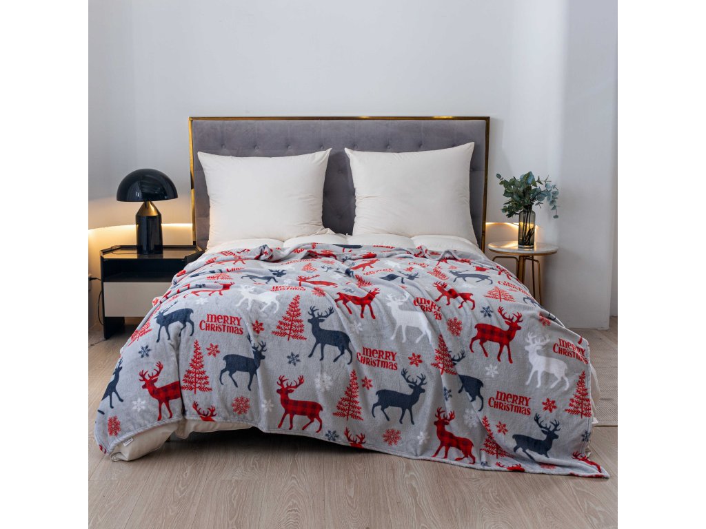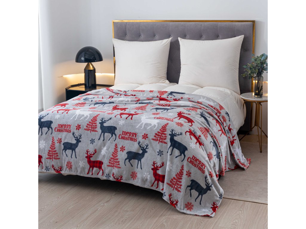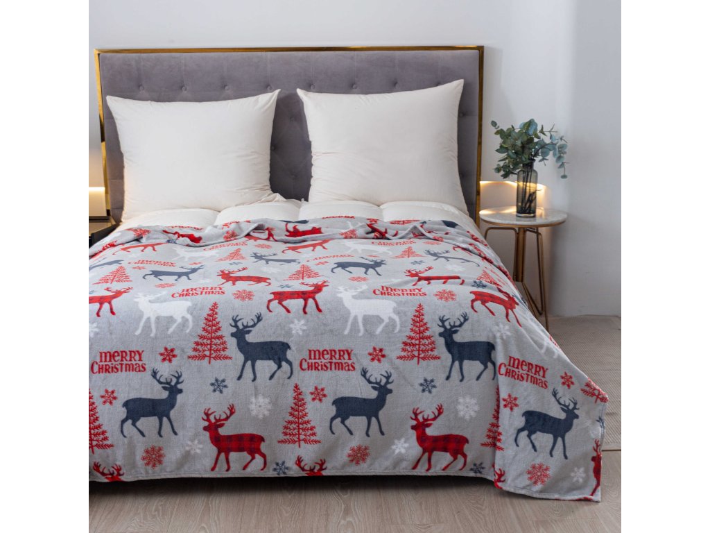 Vánoční mikroplyšová deka MERRY CHRISTMAS DEER šedá