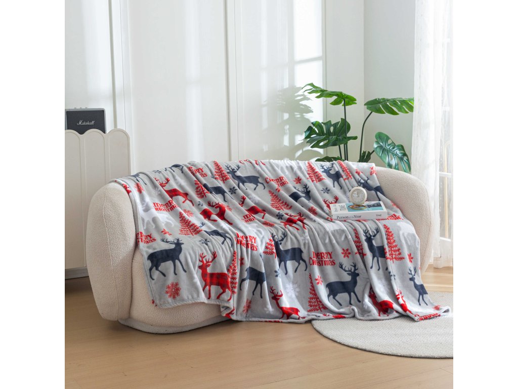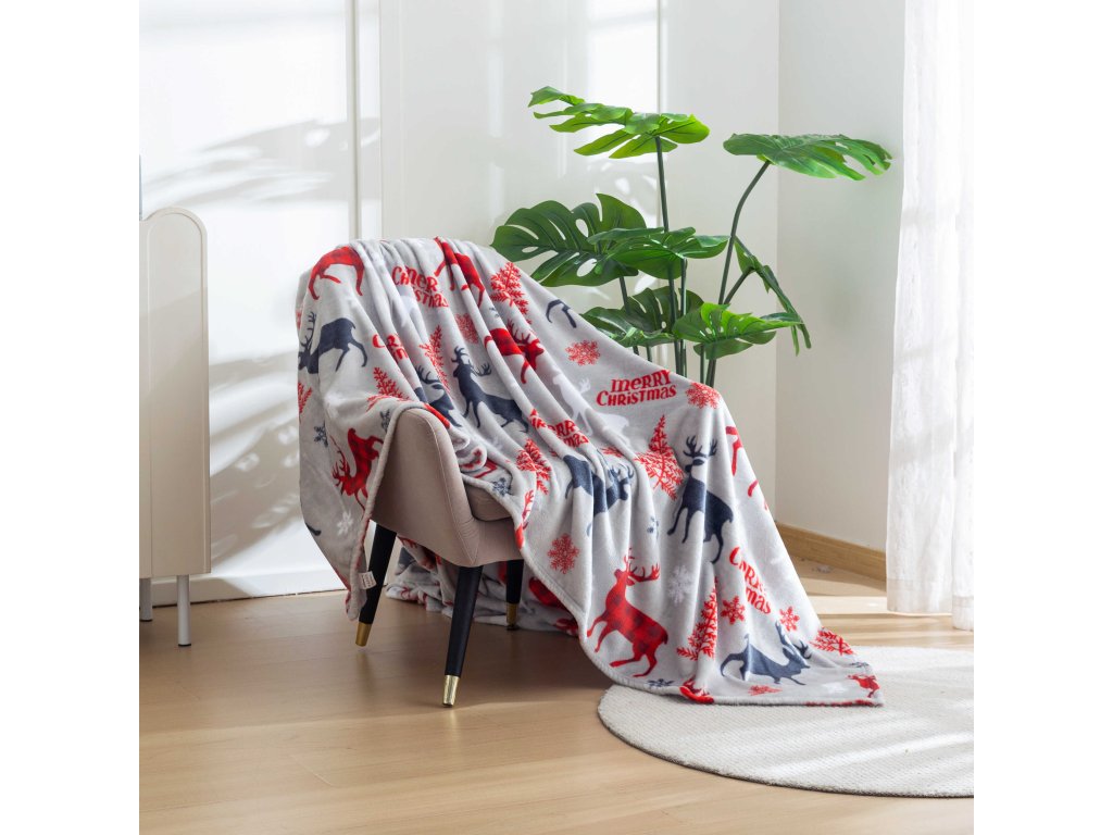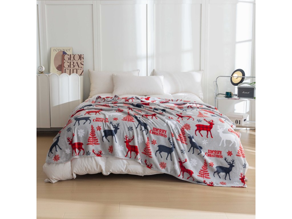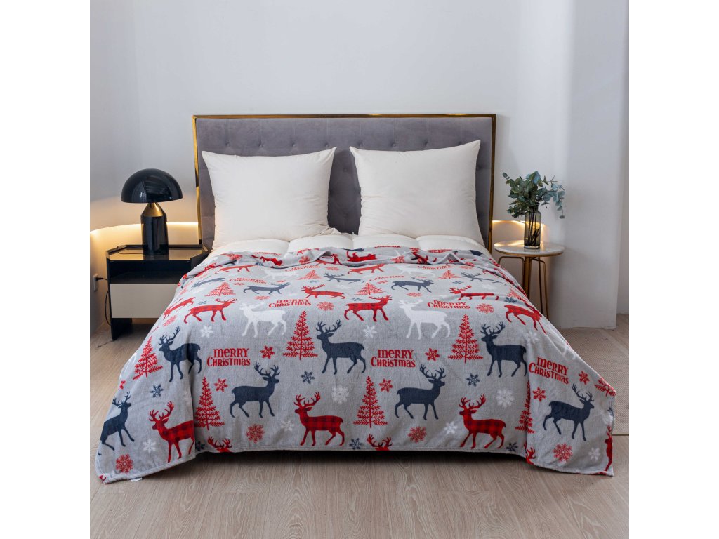 Vánoční mikroplyšová deka MERRY CHRISTMAS DEER šedá