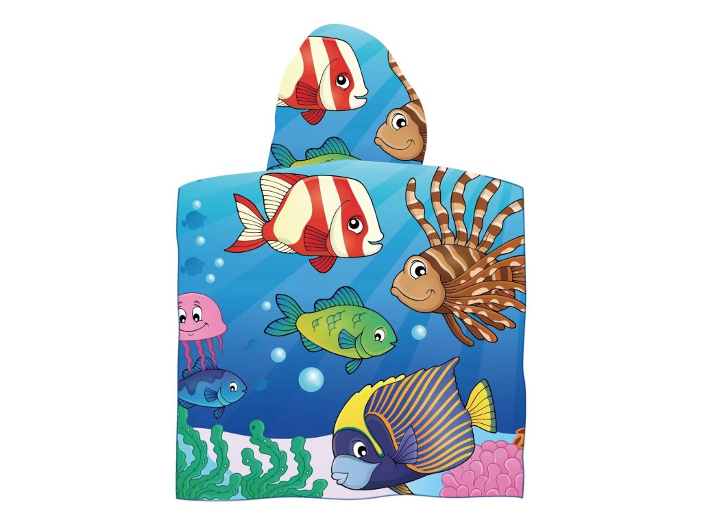 Dětské pončo VESELÉ RYBKY modré 60 x 120 cm