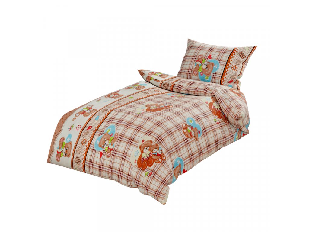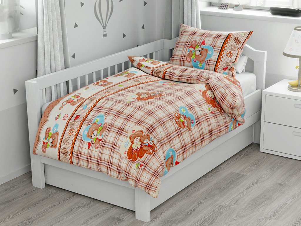 Bavlněné povlečení do postýlky MEDVÍDEK LOVE hnědé