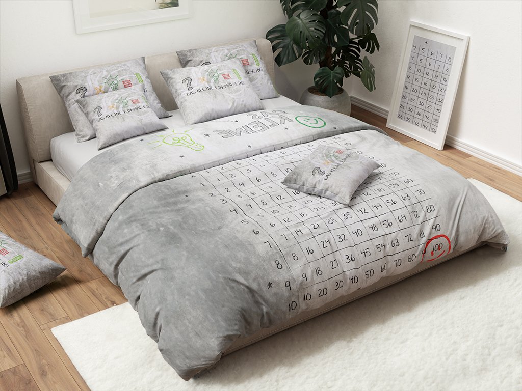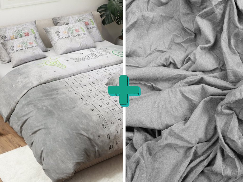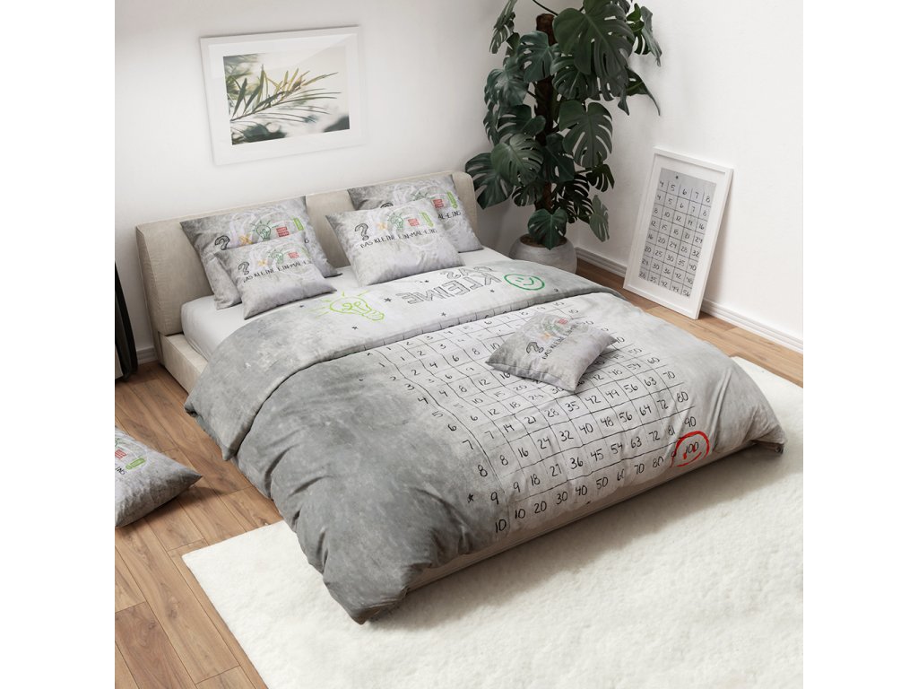 Šedá sada dětské povlečení NUMBERS + prostěradlo Jersey 90x200cm