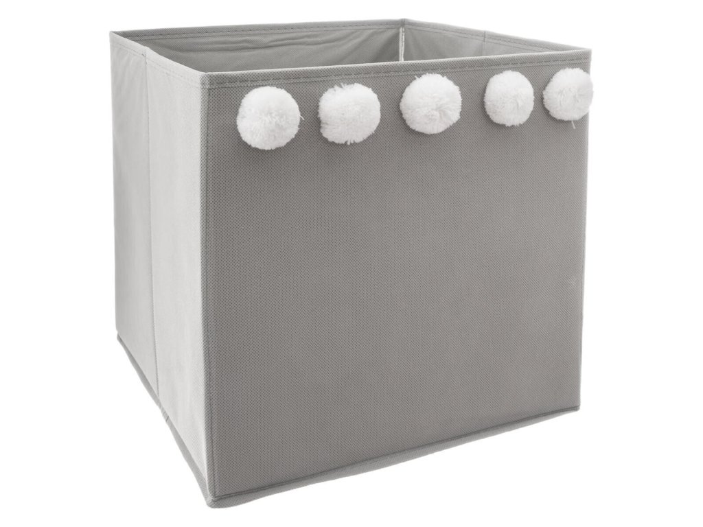 Šedá skládací krabice s bambulemi POMPOME