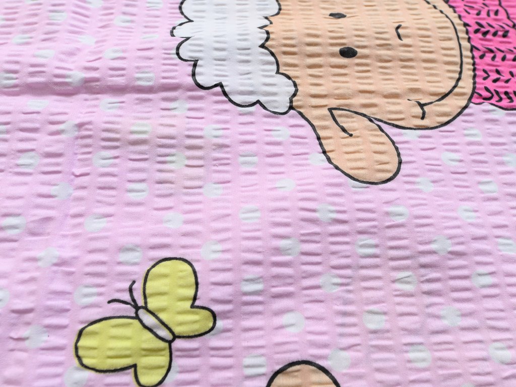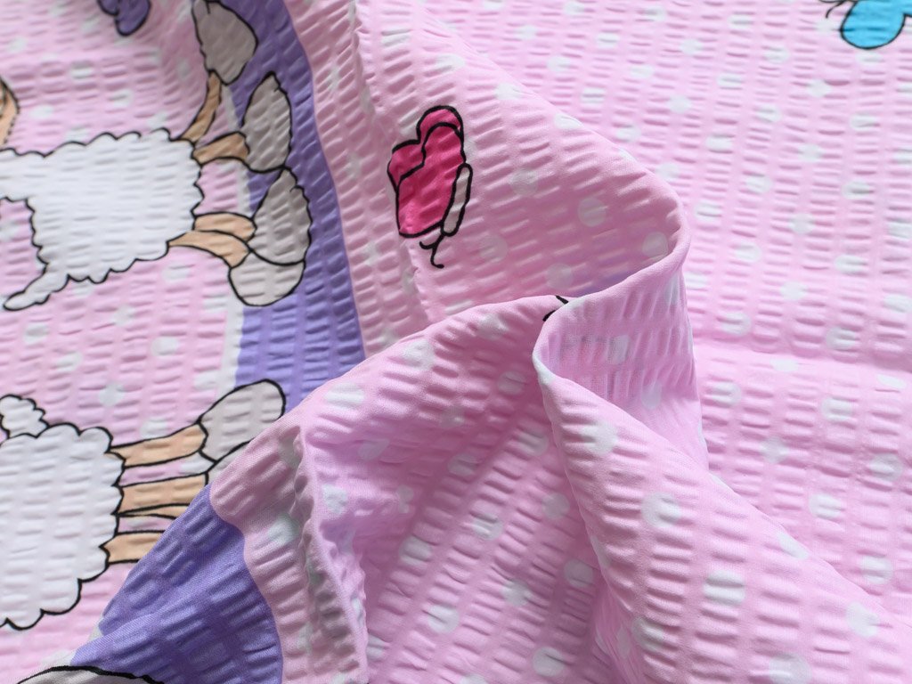 Praktický materiál, který vyniká stejnými vlastnostmi jako bavlna bez nutnosti žehlení. Krep je ideální materiál pro děti i dospělé v každém ročním období. V zimě zahřeje a v létě příjemně chladí, je vhodný i pro alergiky. Snadná údržba, savost, prodyšnost a měkkost je zachována i na typicky zvrásněném povrchu. Vlnitého povrchu je docíleno šetrnou úpravou bavlny, při plném zachování jejích vlastností.