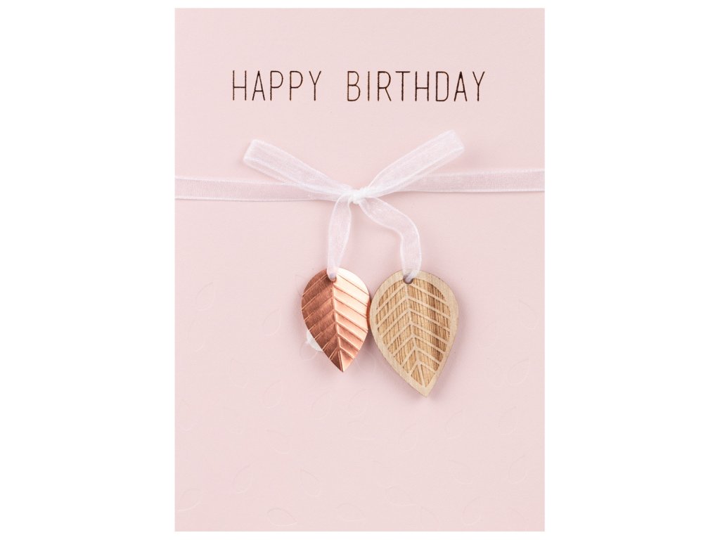 Papírové přání k narozeninám HAPPY BIRTHDAY s dřevěnou ozdobou