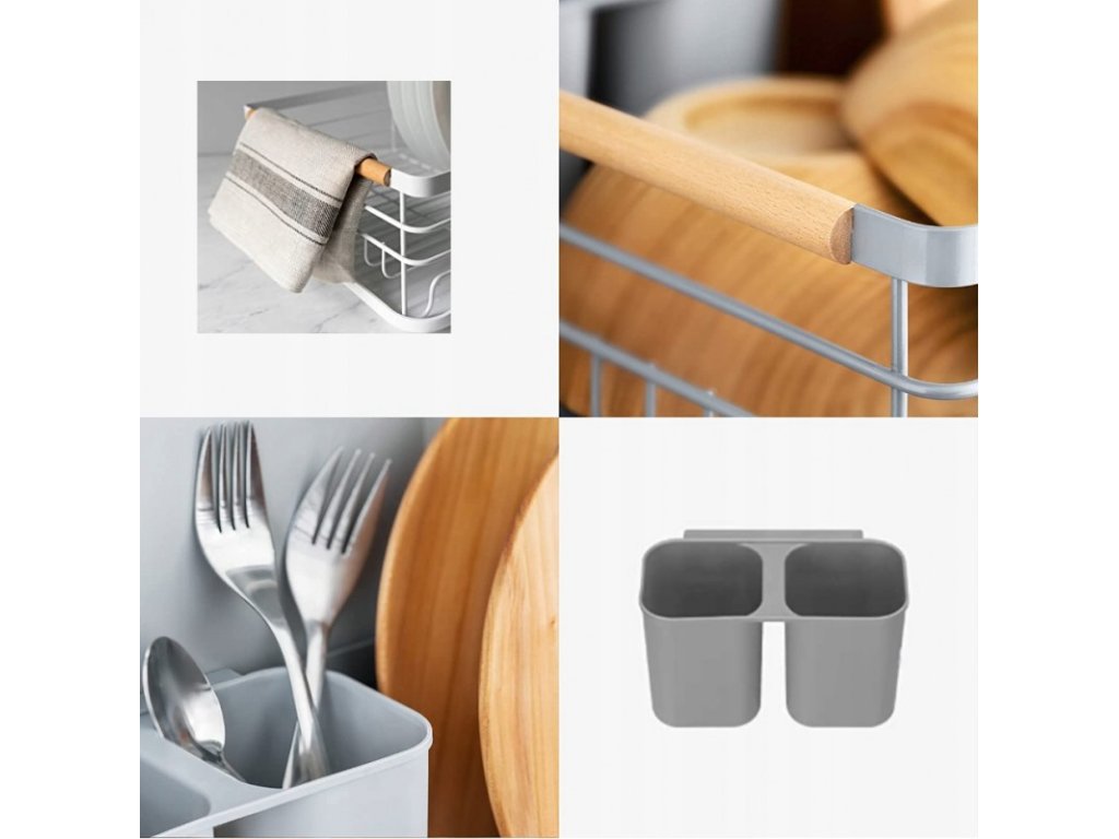 Kovový odkapávač na nádobí Avero v elegantní bílé barvě dokonale ladí s jakýmkoliv kuchyňským interiérem. Jeho minimalistický a moderní design se snadno přizpůsobí různým stylům, od klasických po současné. Bílý povrch nejen dodává nádech sofistikovanosti, ale také se snadno kombinuje s ostatními kuchyňskými doplňky a spotřebiči. Tento odkapávač je tak nejen praktický, ale také estetický prvek, který vylepší vzhled vaší kuchyně.