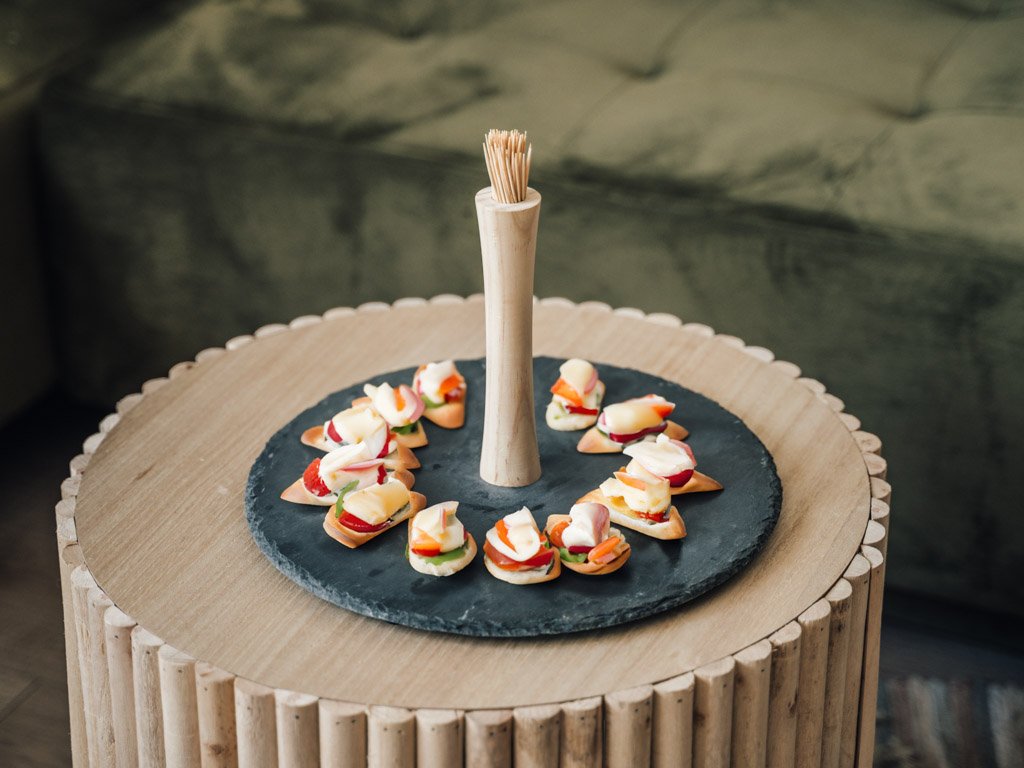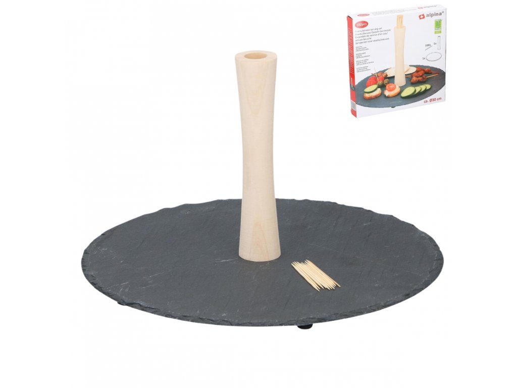 Kulatý břidlicový podnos SLATE s bambusovými párátky