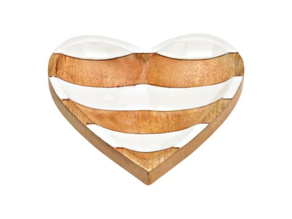 Miska ve tvaru srdce z mangového dřeva LOVAIRE 16x15 cm, bílé pruhy