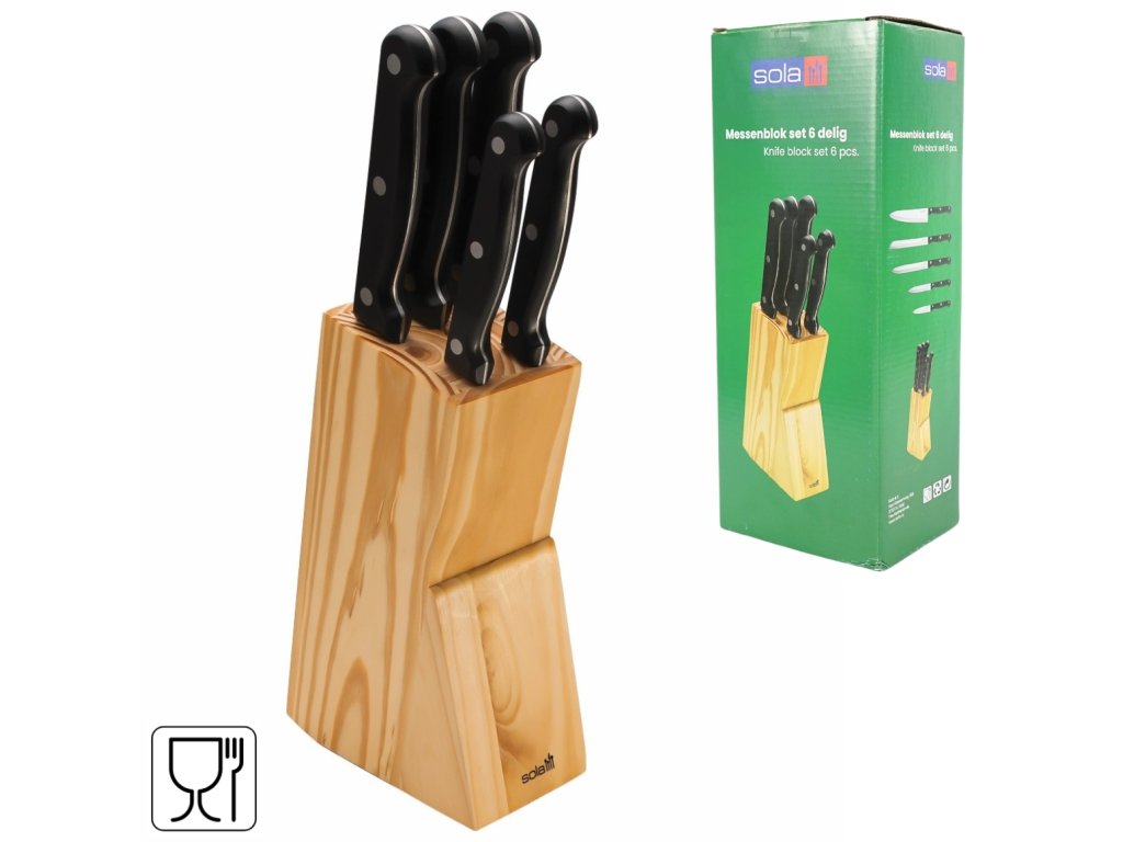Sada nožů SOLA KNIFE v dřevěném bloku, 6 ks