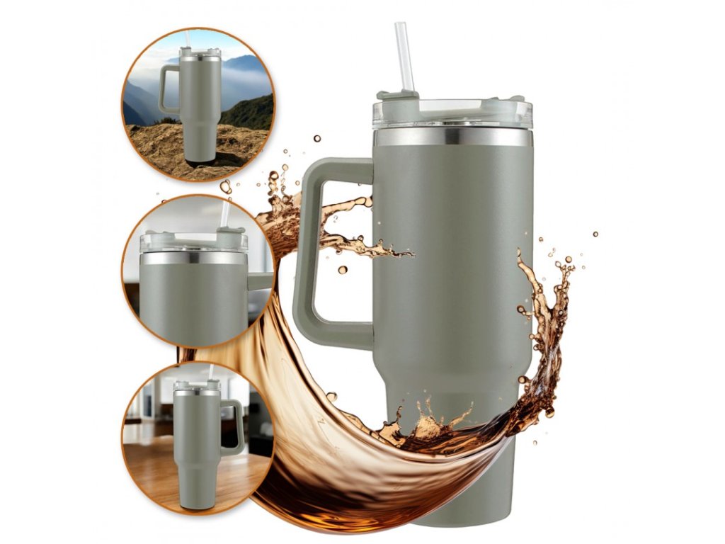 Termohrnek s brčkem TERMOS 1000 ml, šedý