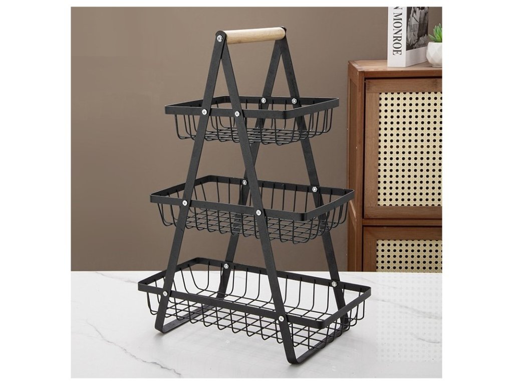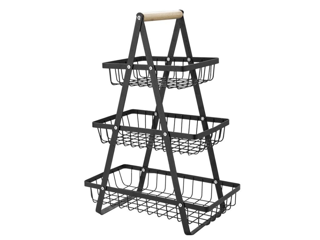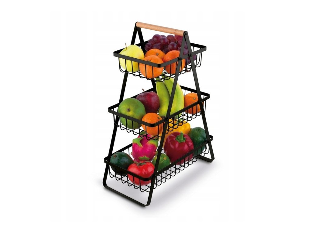 Třípatrový koš na ovoce a zeleninu PATERA, černý