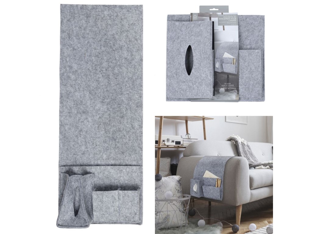Textilní organizér na pohovku, šedý