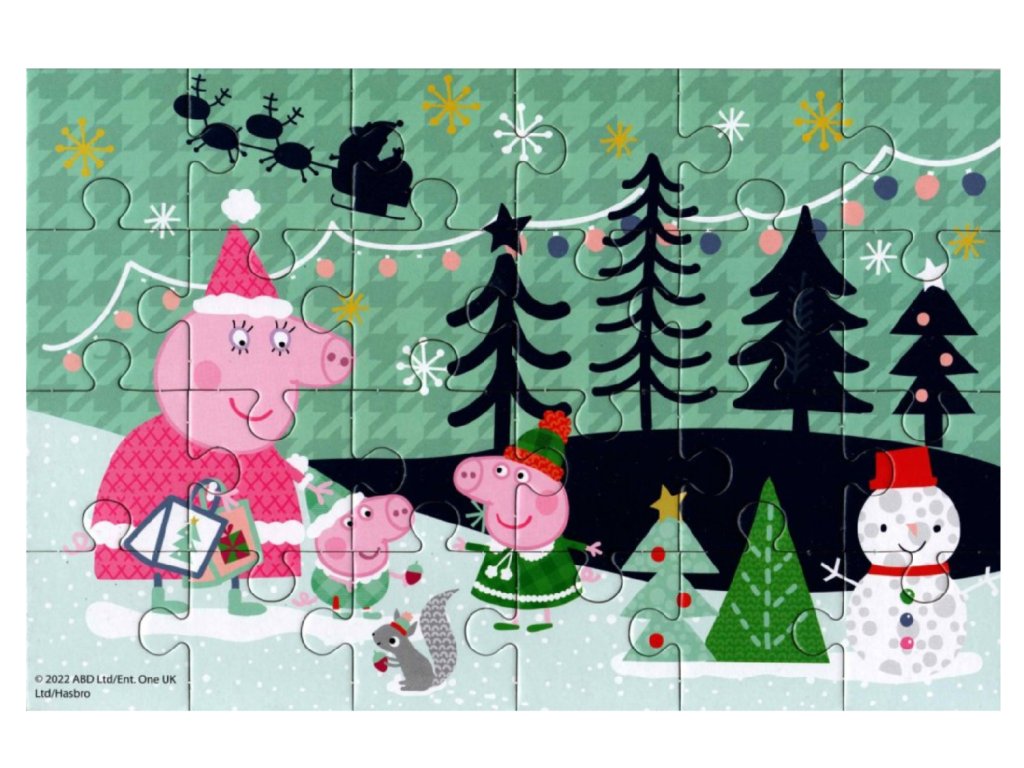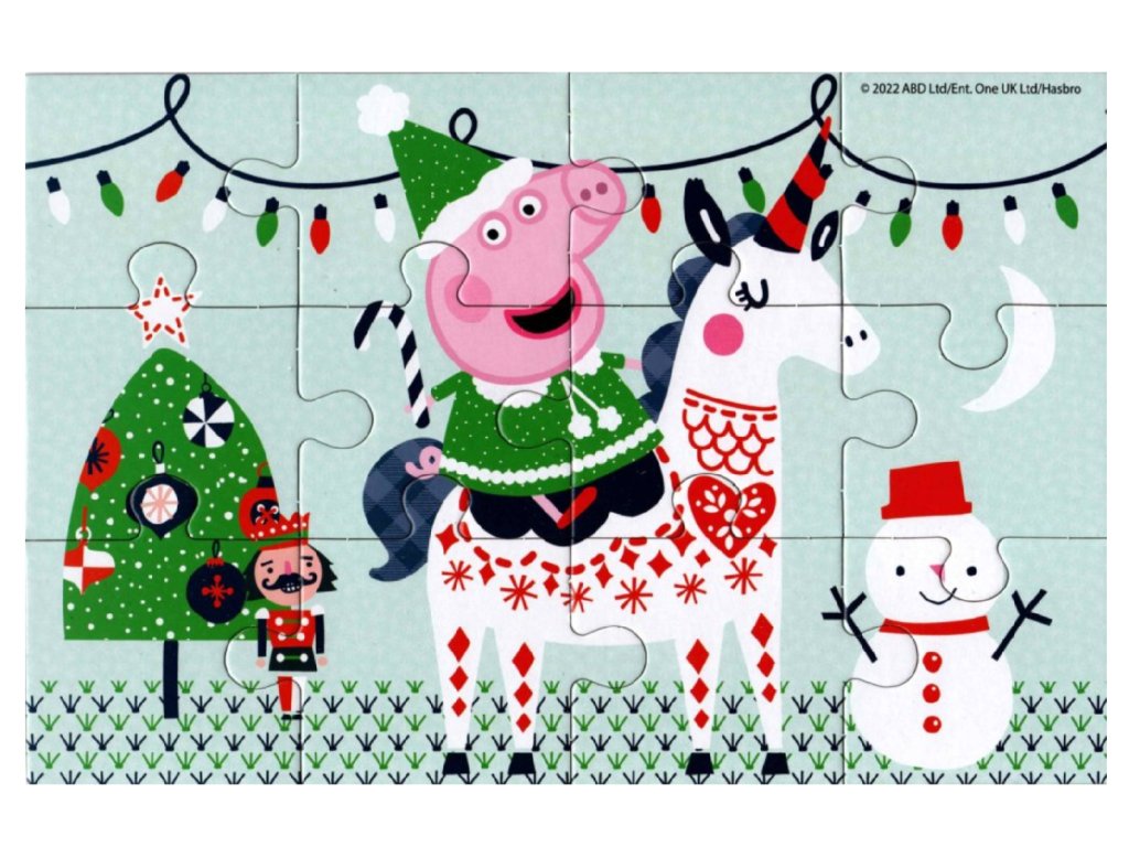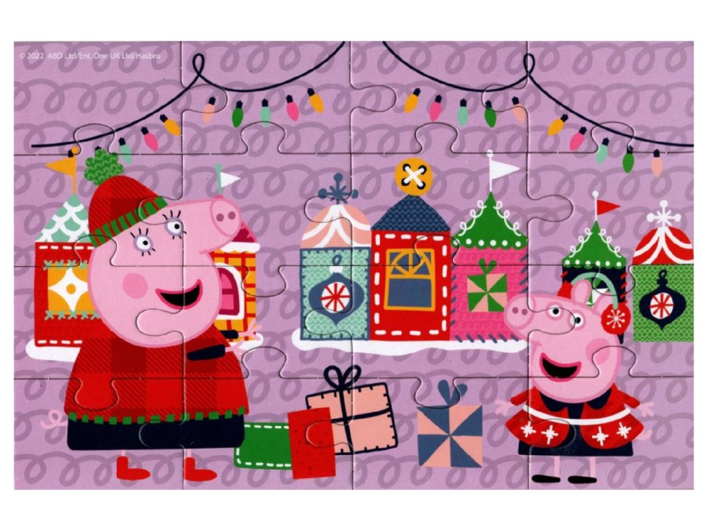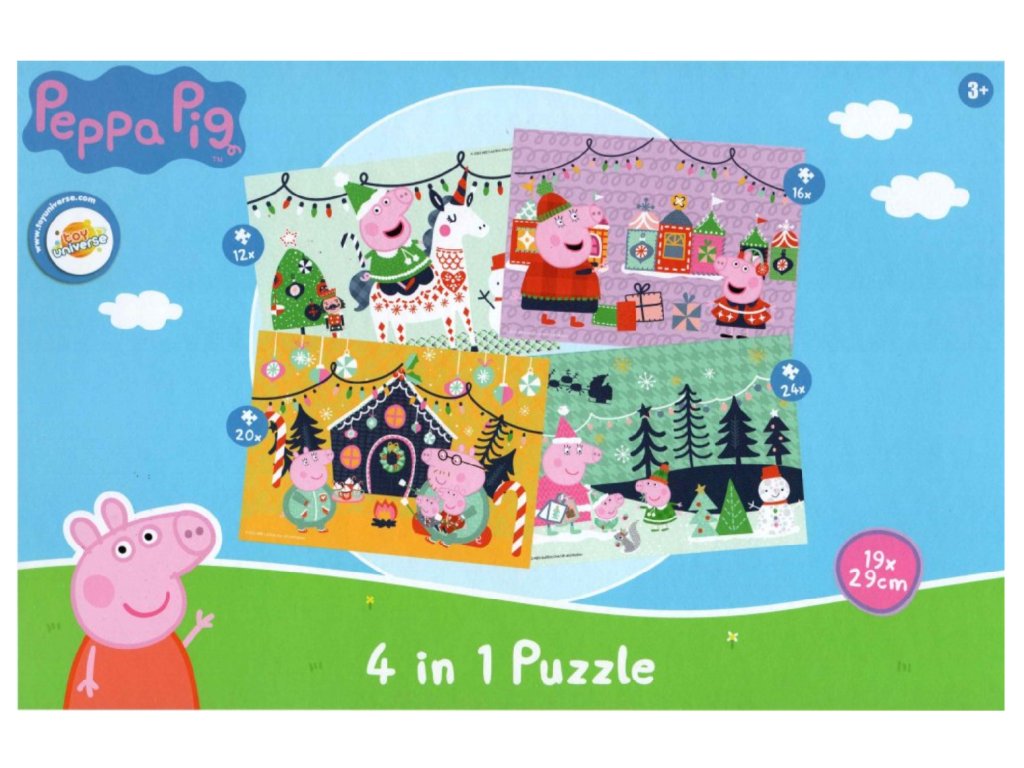 Dětské puzzle 4v1 PRASÁTKO PEPPA a vánoční nálada, 19x29 cm