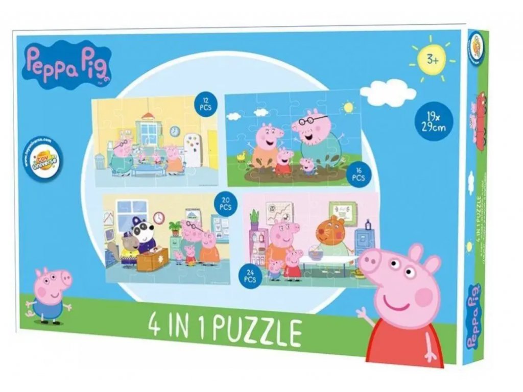 Dětské puzzle 4v1 PRASÁTKO PEPPA den s rodinou, 19x29 cm