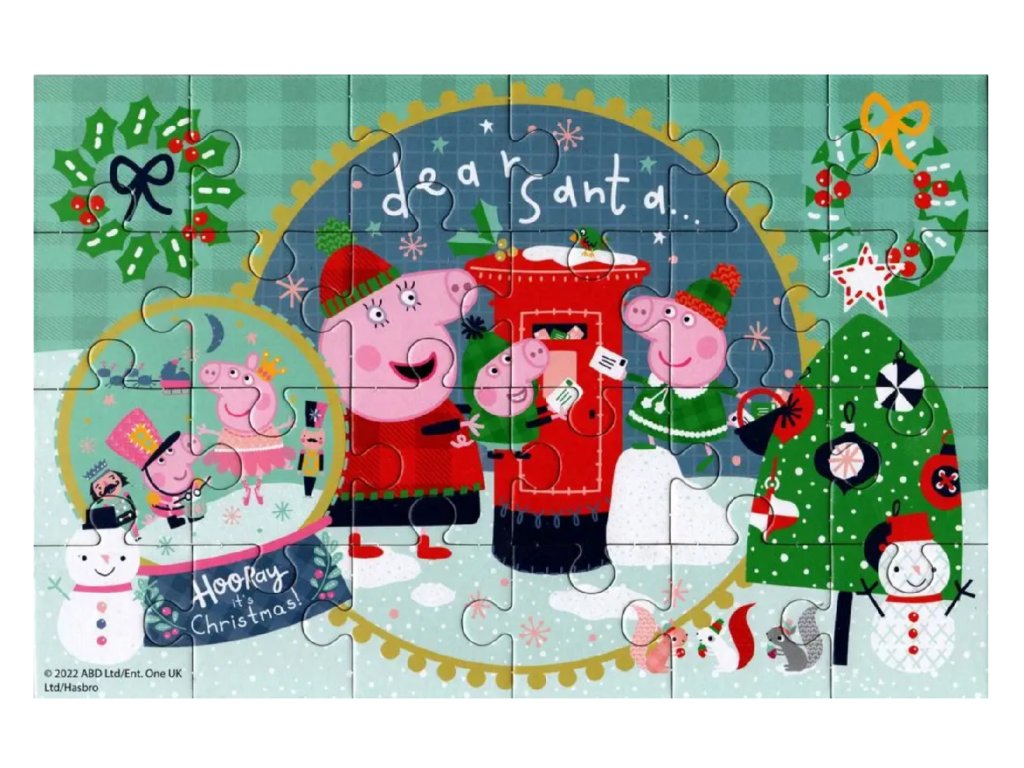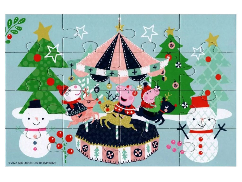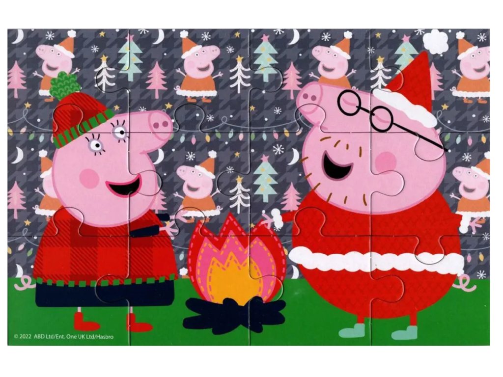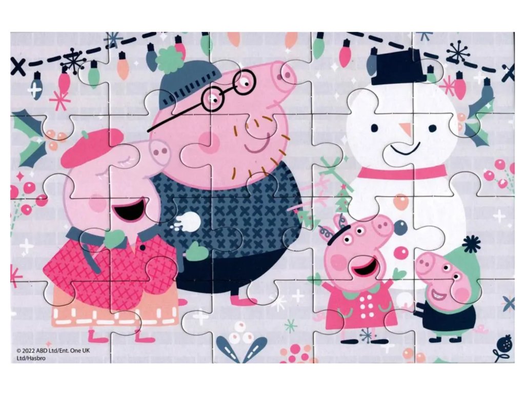 Dětské puzzle 4v1 PRASÁTKO PEPPA se sněhulákem, 19x29 cm