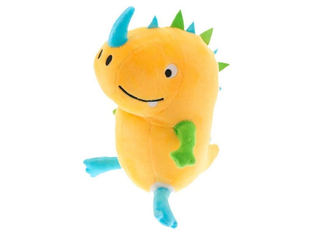 Žlutý plyšový dinosaur DOCUS s modrým rohem
